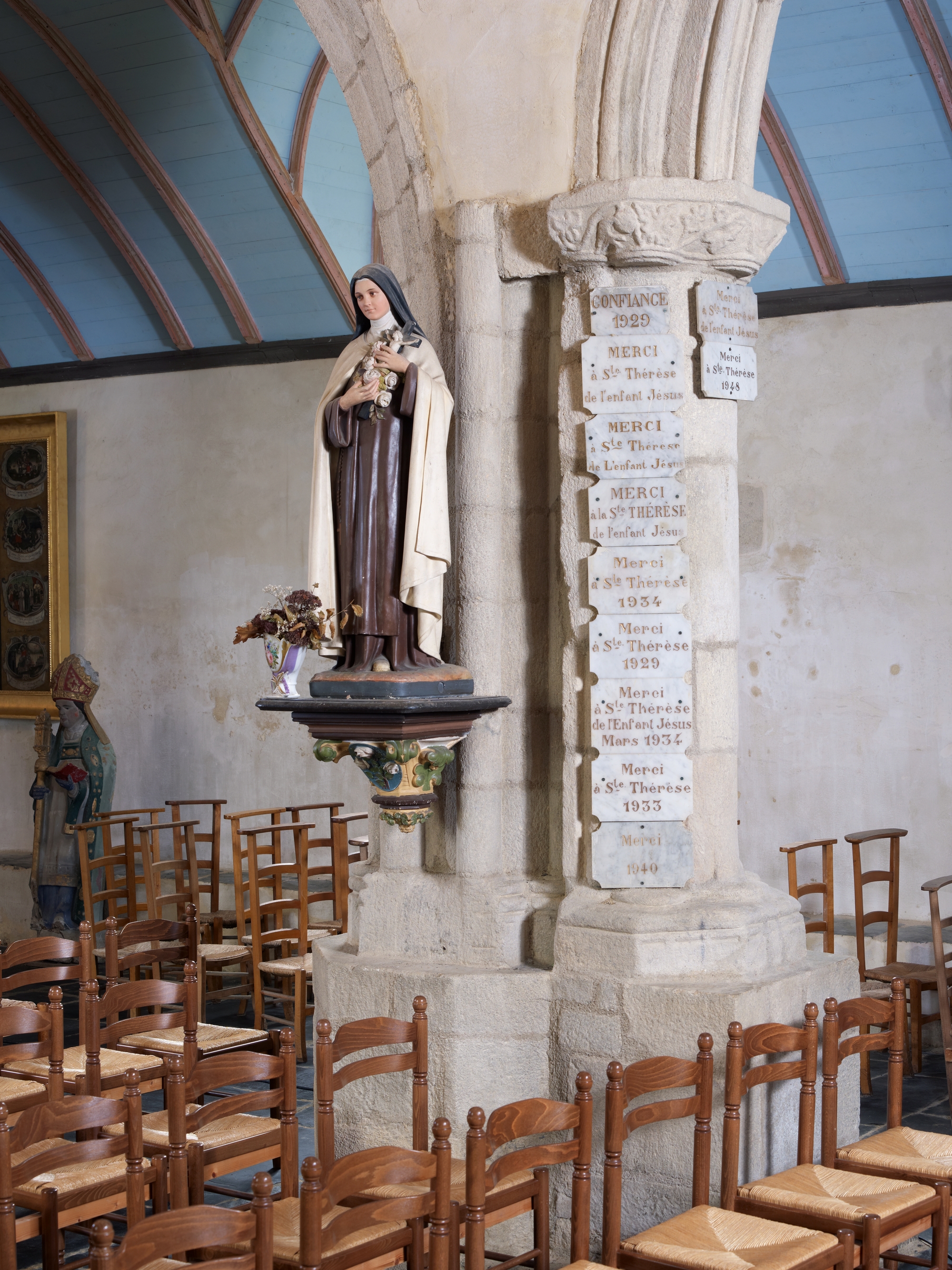 Pilier, bas-côté nord, Sainte-Thérèse de Lisieux et ex-votoImmatriculation