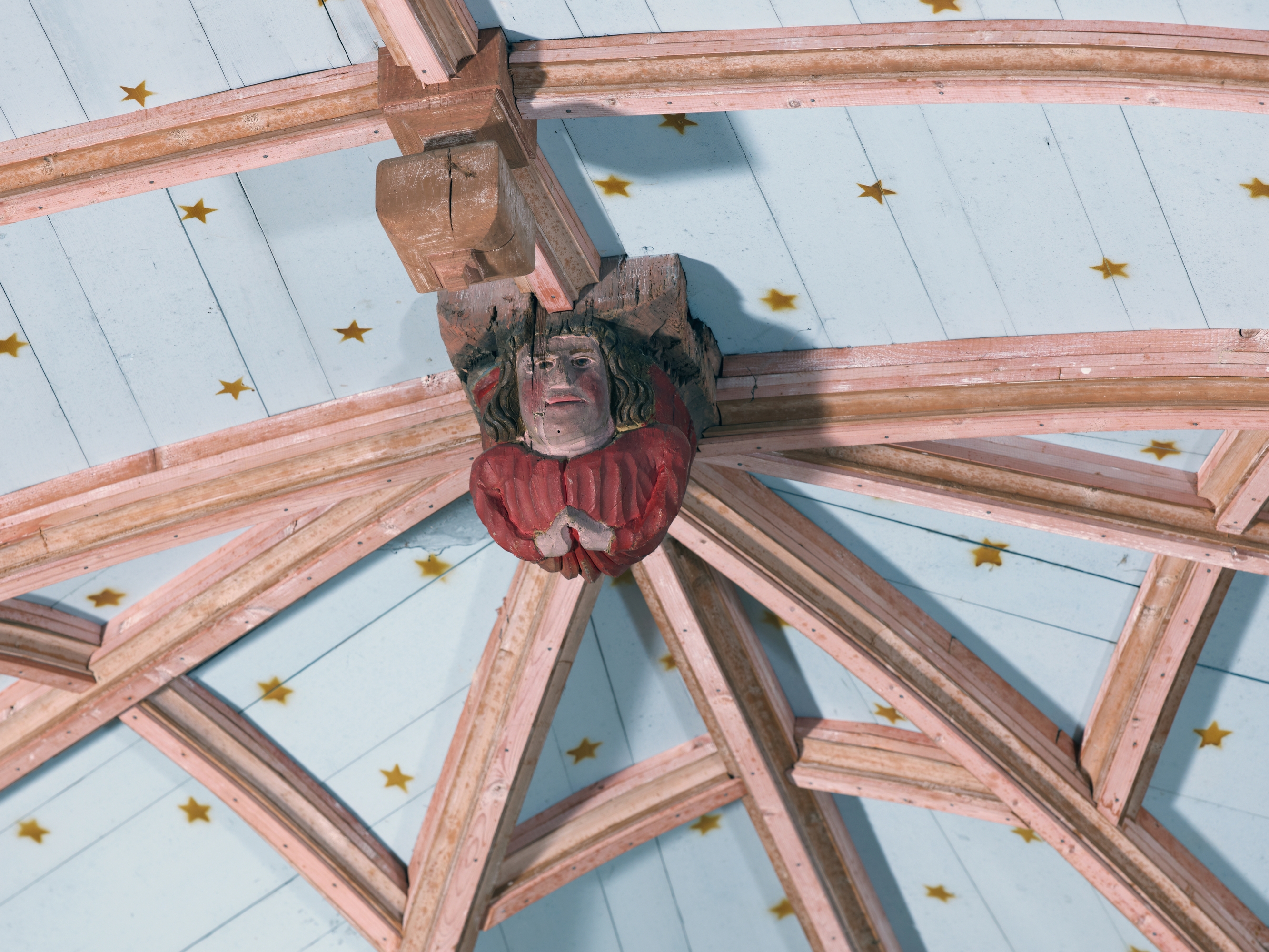 Poinçon pendant, représentation humaine, bois polychromeImmatriculation