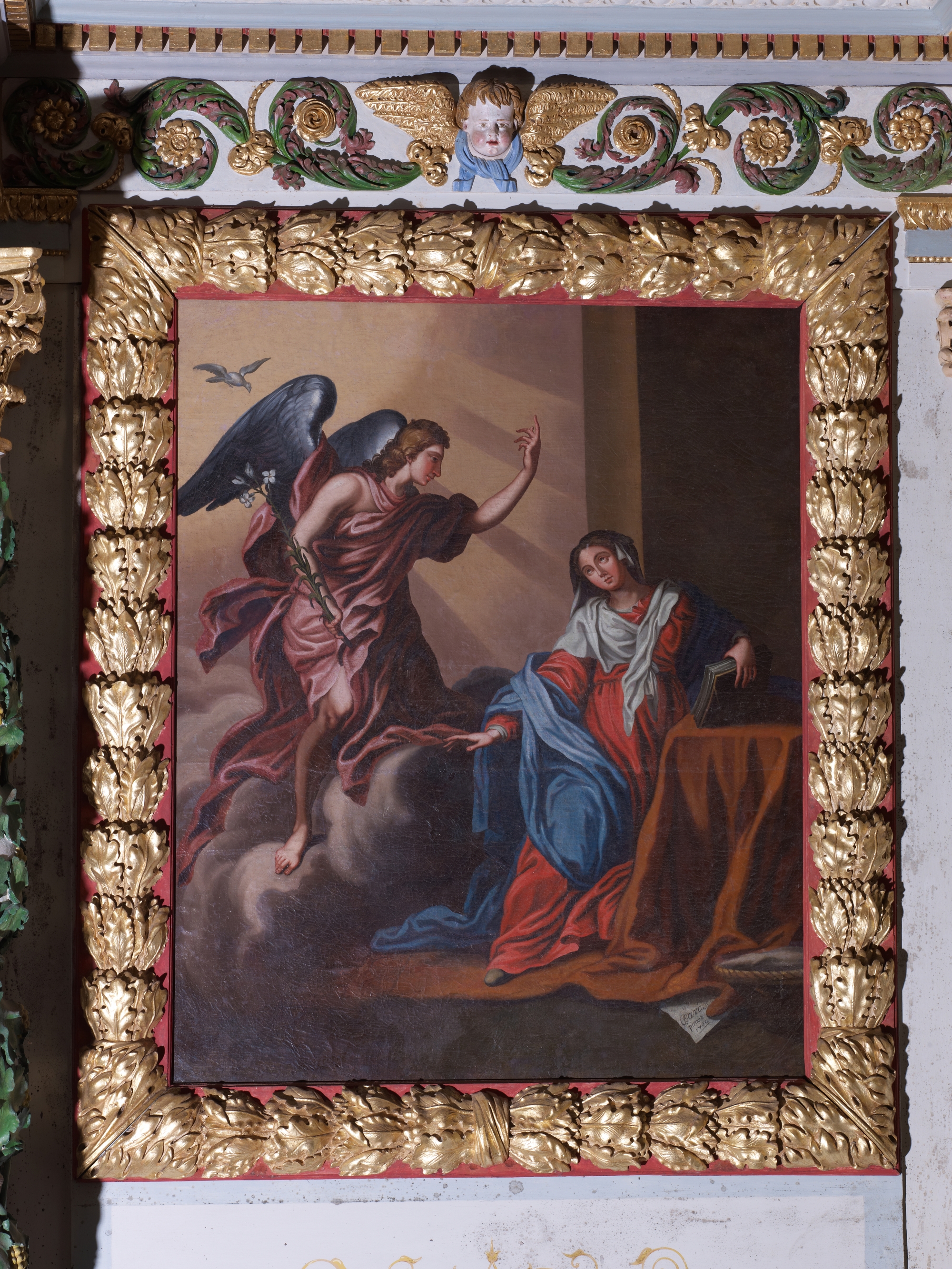 Tableau "Annonciation", Baradec pinxit 1700 (huile sur toile)Immatriculation