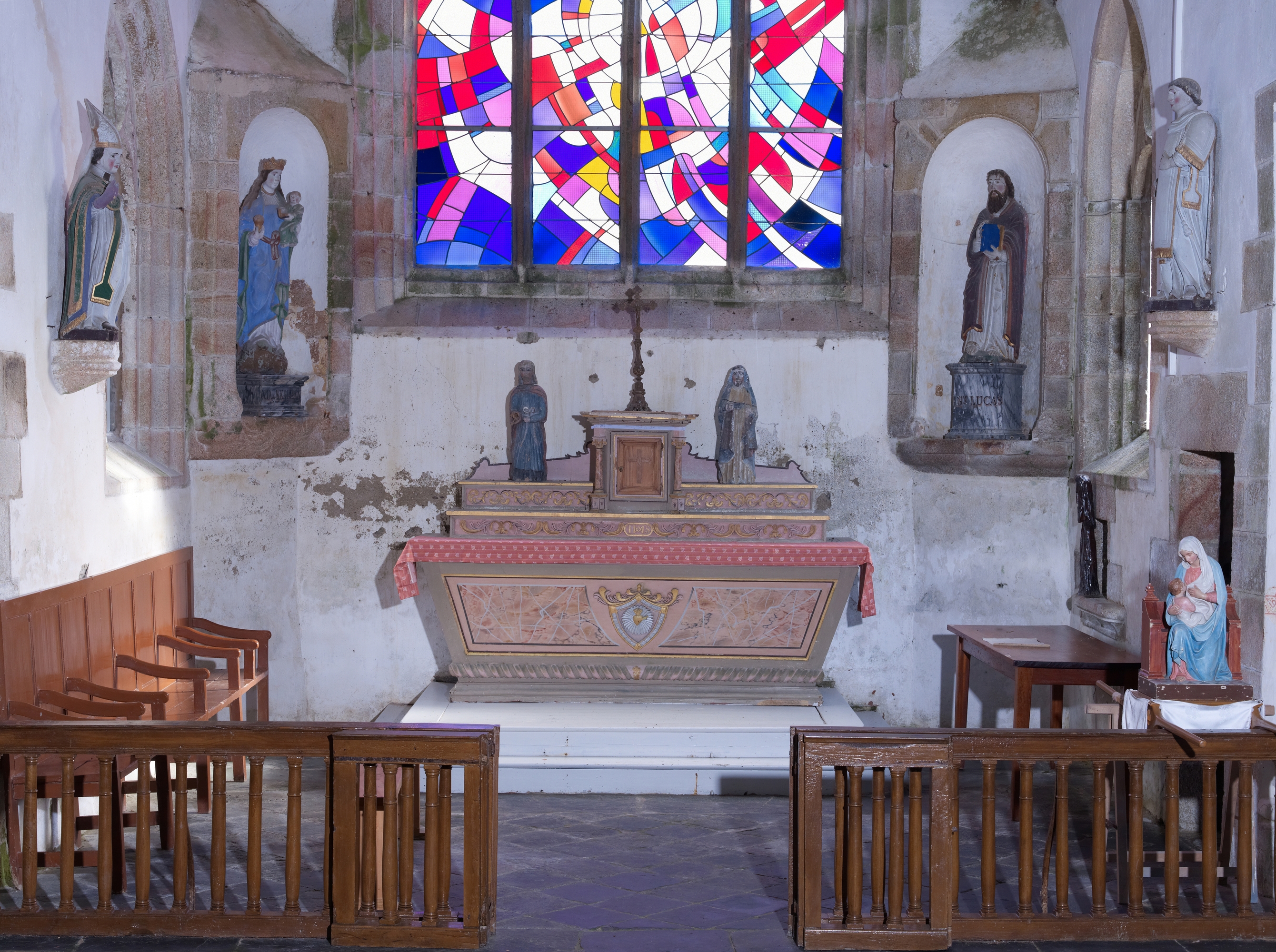 Chevet, autel, statues et verrière (vue générale)Immatriculation