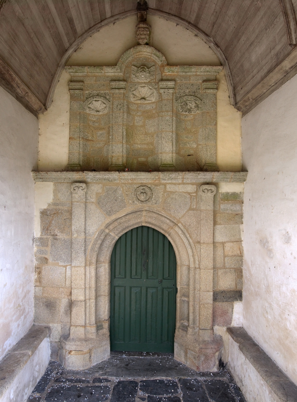 Chapelle Notre-Dame : proche sud, entrée, niches à statuesImmatriculation