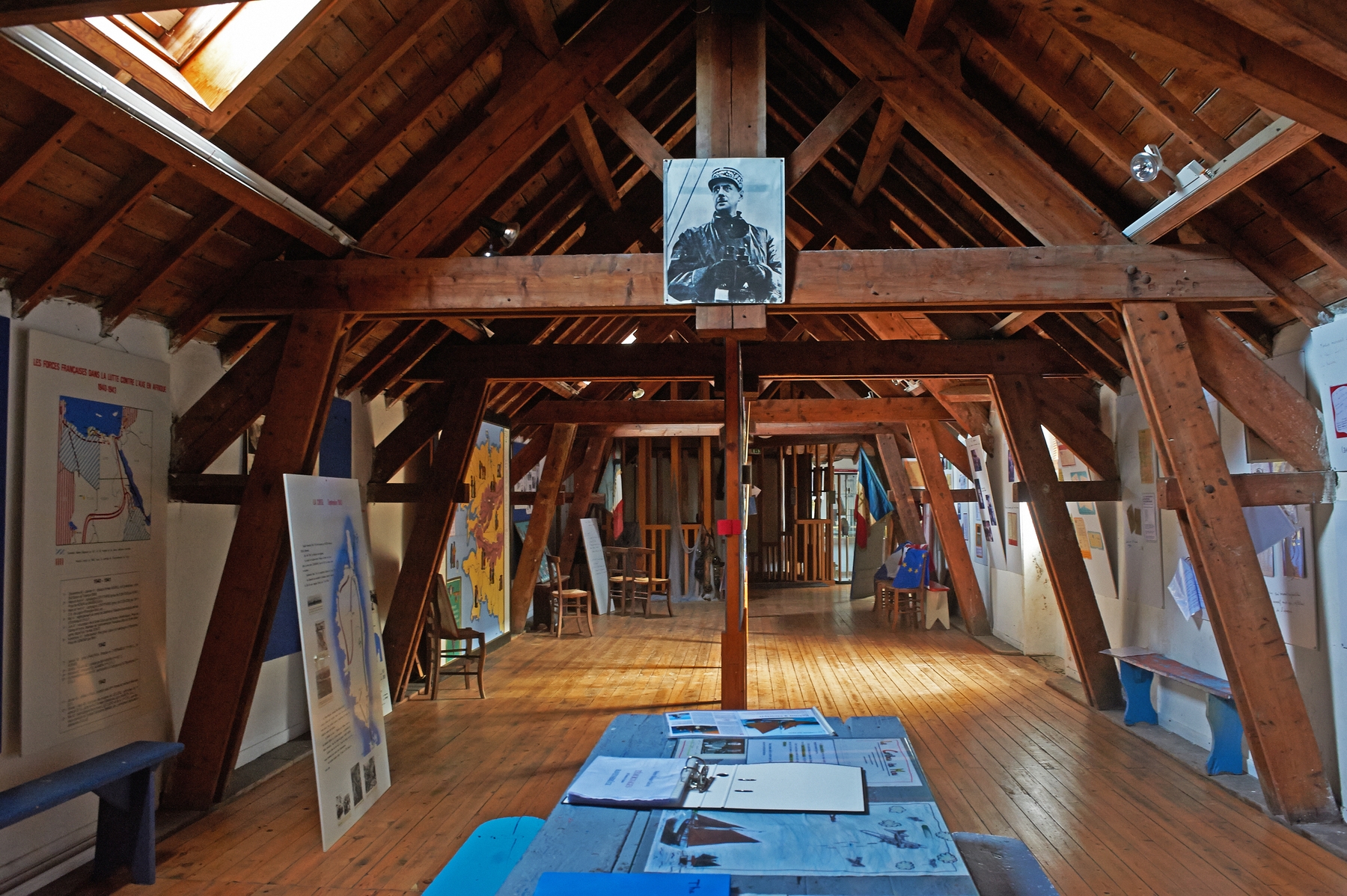 Abri du marin, musée de la France Libre, vue intérieure, charpente, salle d'expositionImmatriculation