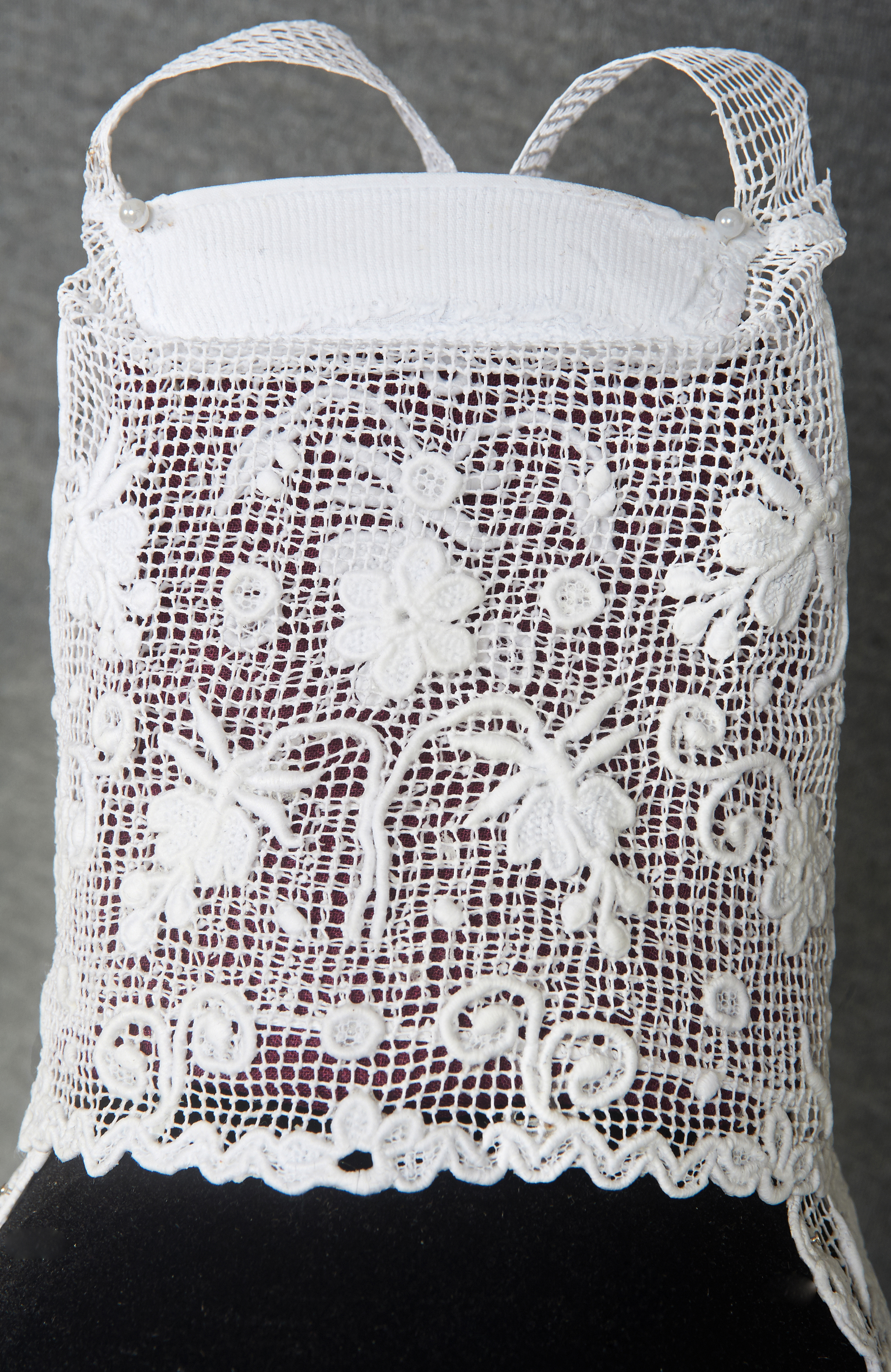 Borledenn authentique visible à la maison du filet brodé, ty a roued brodet, à Plouénan (29) Face avant de la coiffeImmatriculation