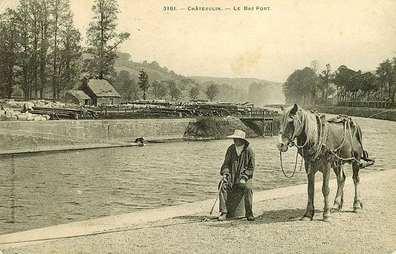 Carte postale, Le Bas port de Châteaulin, Collection Villard, Quimper, début 20e siècle.Immatriculation