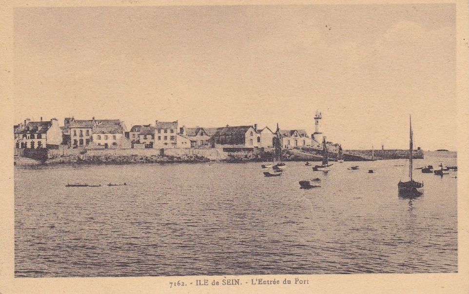 Carte postale. Ile de Sein, l'entrée du port.Immatriculation