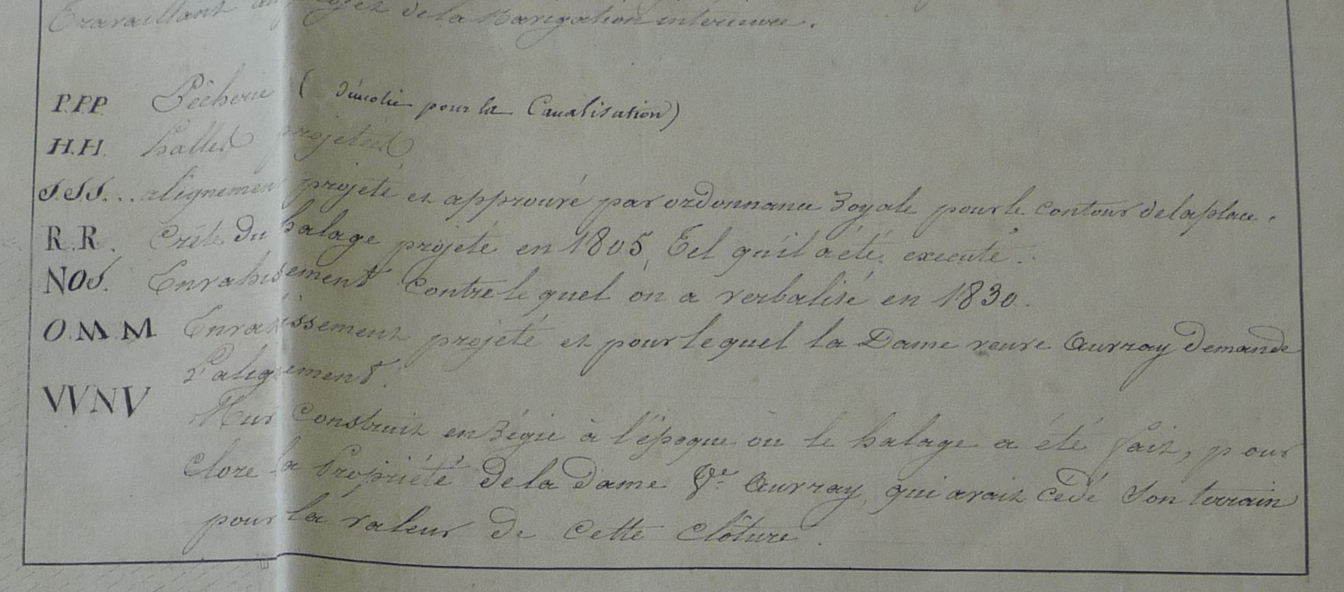 Plan dressé après 1830 : légende (détail)Immatriculation