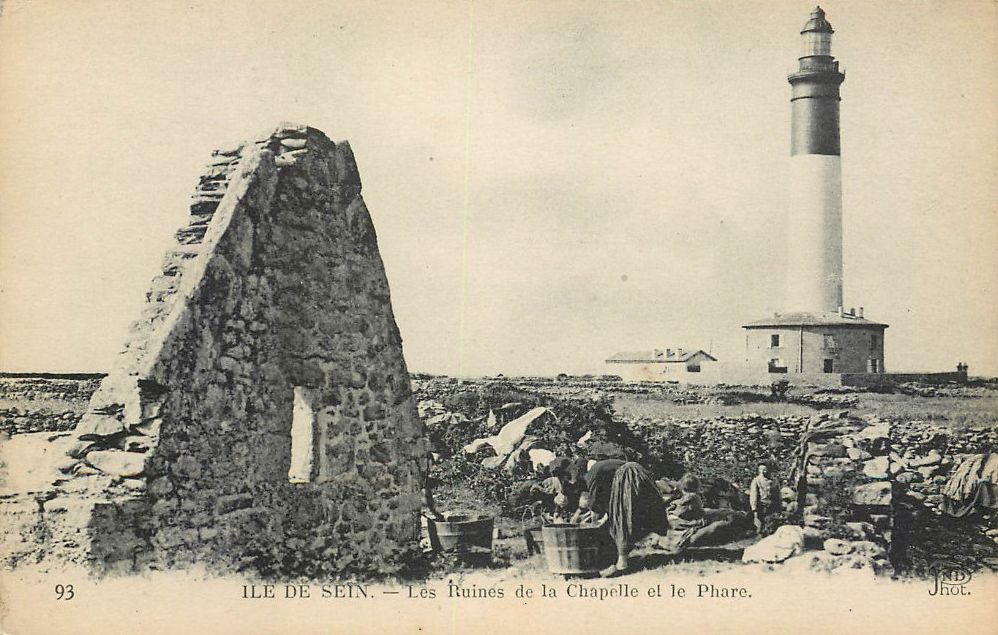 Carte postale. Ile de Sein. Les ruines de la chapelle et le phare. Ed. ND Phot.Immatriculation