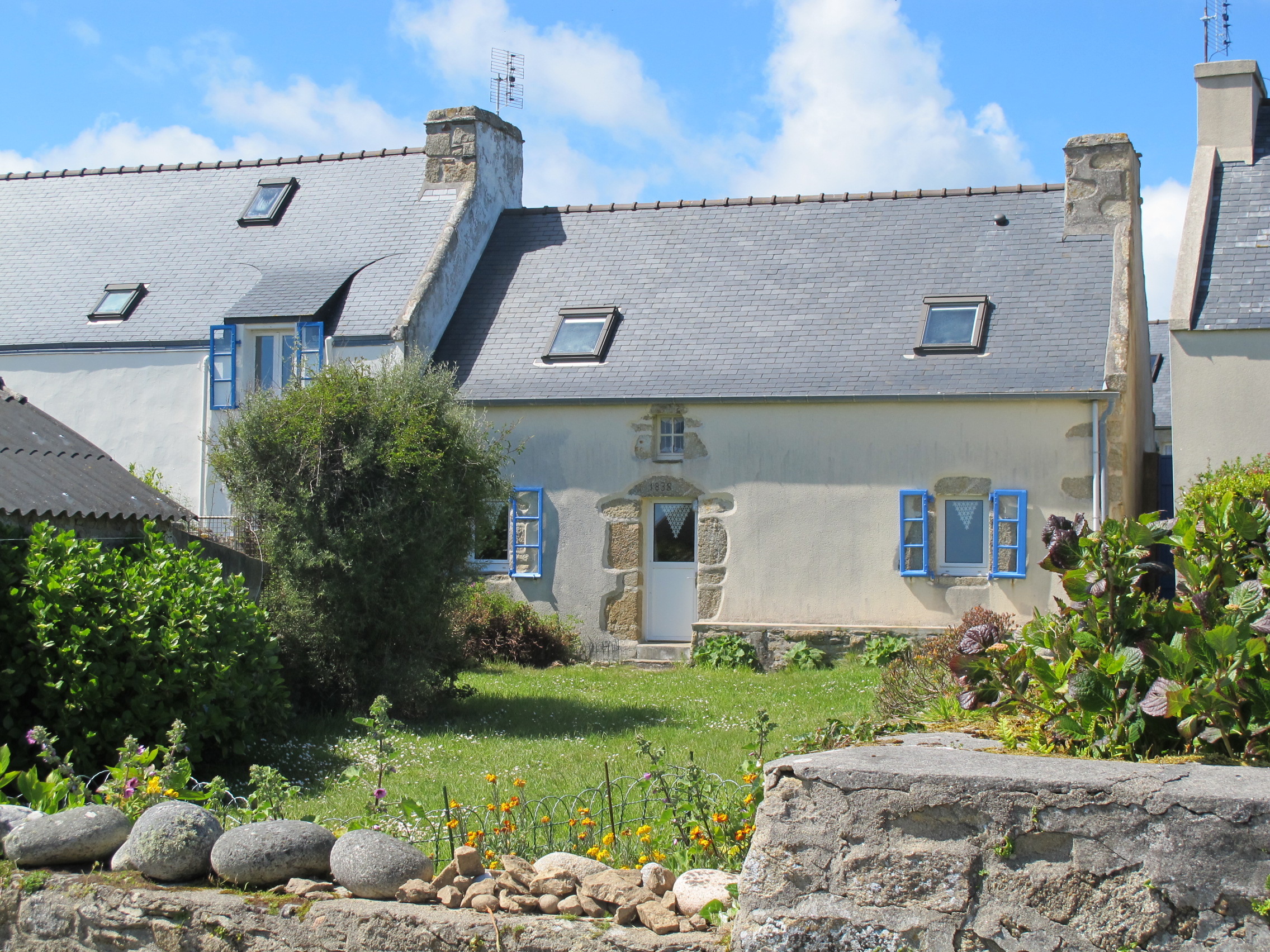 Porsguen, alignement 1, façade sud, maison datée 1838Immatriculation