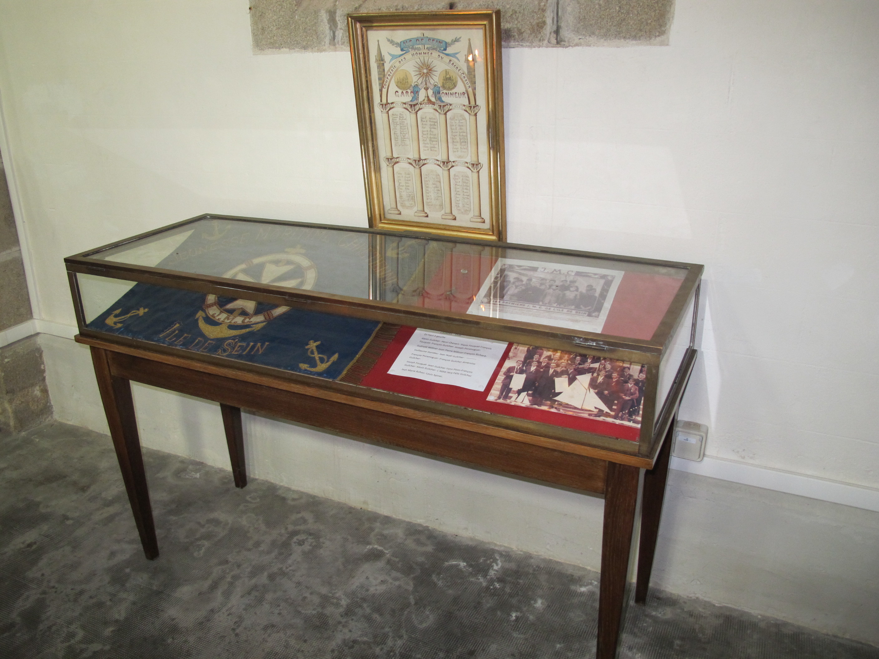 Vitrine : Drapeau Jeunesse Maritime Chrétienne et tableau de la confrérie des Hommes du Sacré-coeurImmatriculation