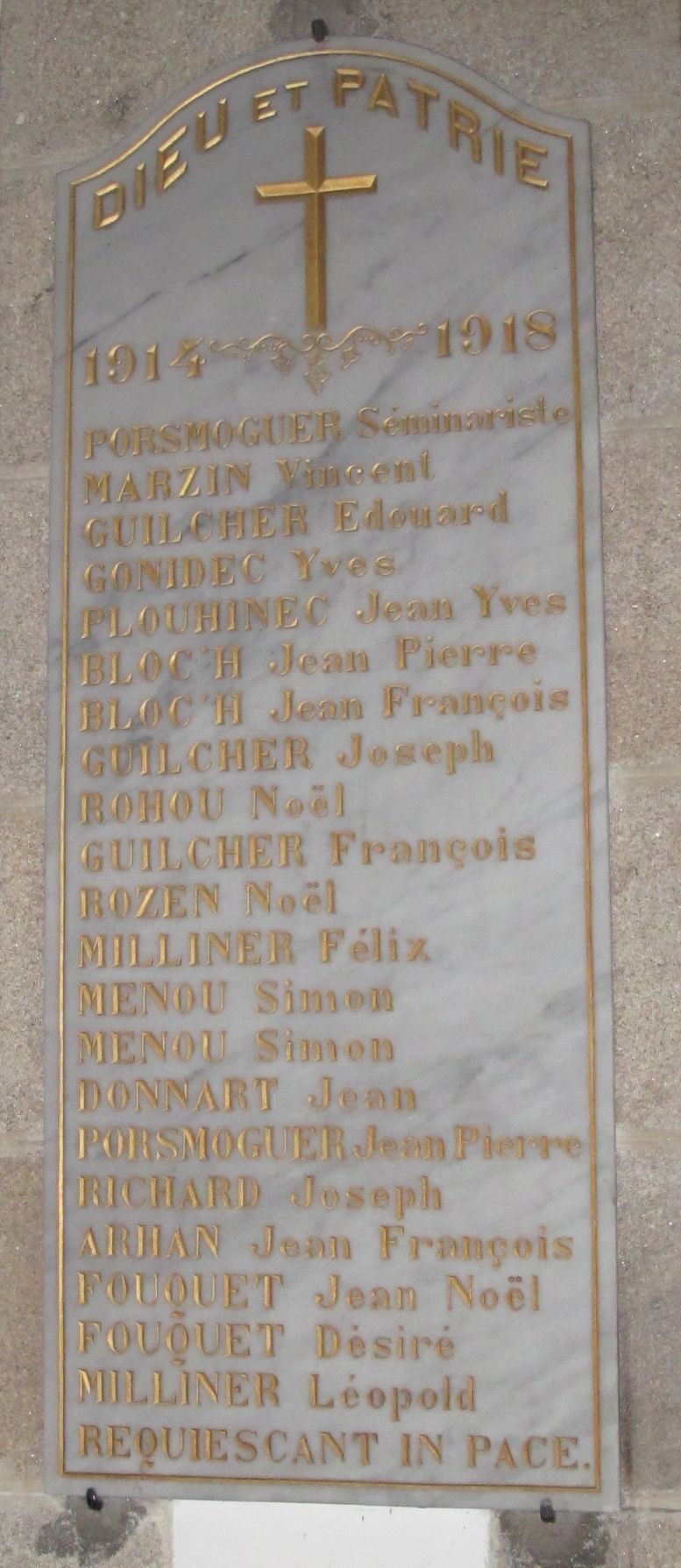 Tableau commémoratif des morts 1914-1918Immatriculation