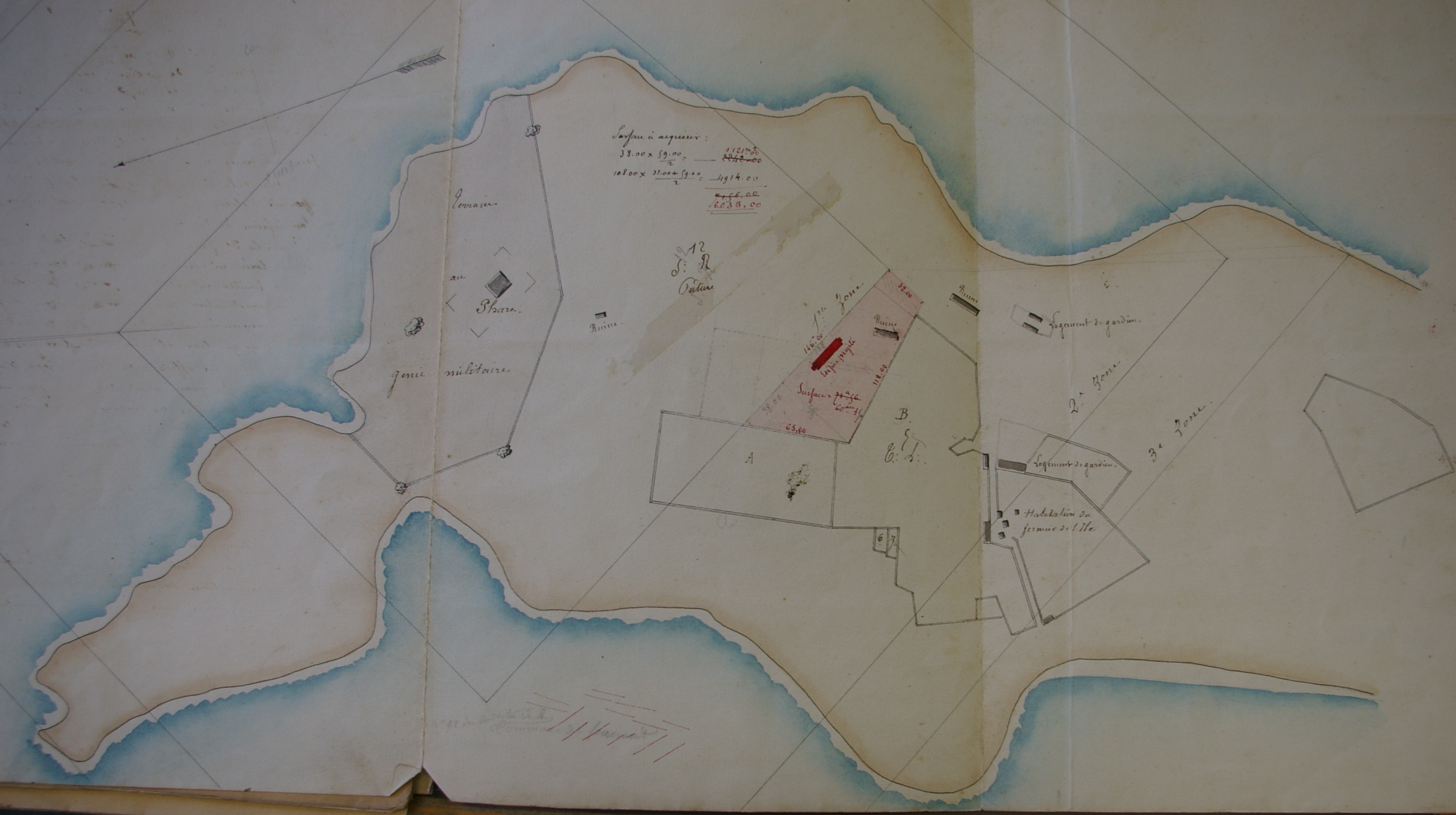 Plan de l'île et situation de la maison d'habitation des gardiens de phare de l'île de PenfretImmatriculation