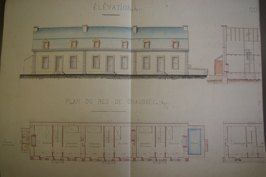 Projet d'établissement d'une maison d'habitation pour les trois gardiens de phare. Elévations - Plan du rez-de-chaussée. 1879Immatriculation