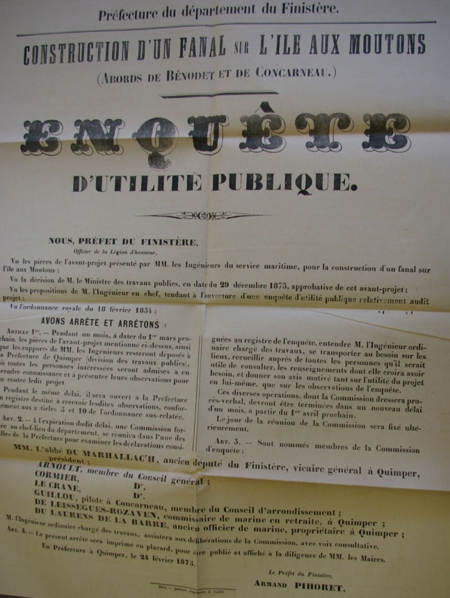 Construction d'un fanal sur l'île aux Moutons - Enquête d'utilité publique - 24 février 1873Immatriculation