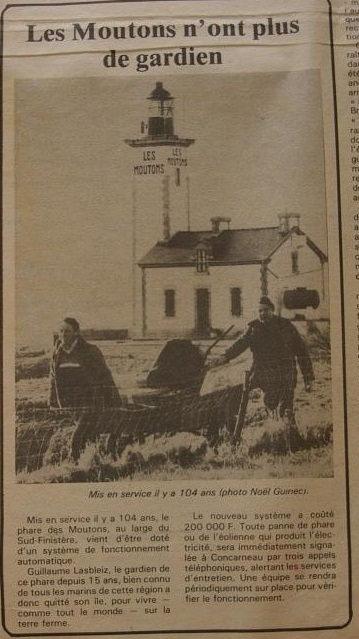 Article du journal Le marin du 22 avril 1983, sur le départ du gardien de phare, Guillaume LasbleisImmatriculation