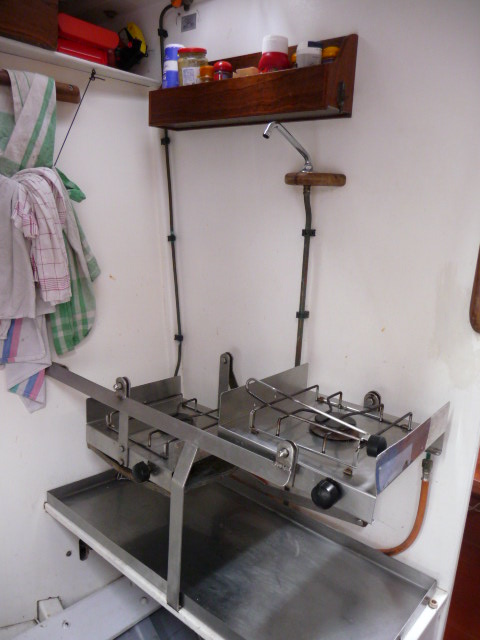Cuisine babord, feu face à la marche du bateau, pompe à eau douce, 2014Immatriculation