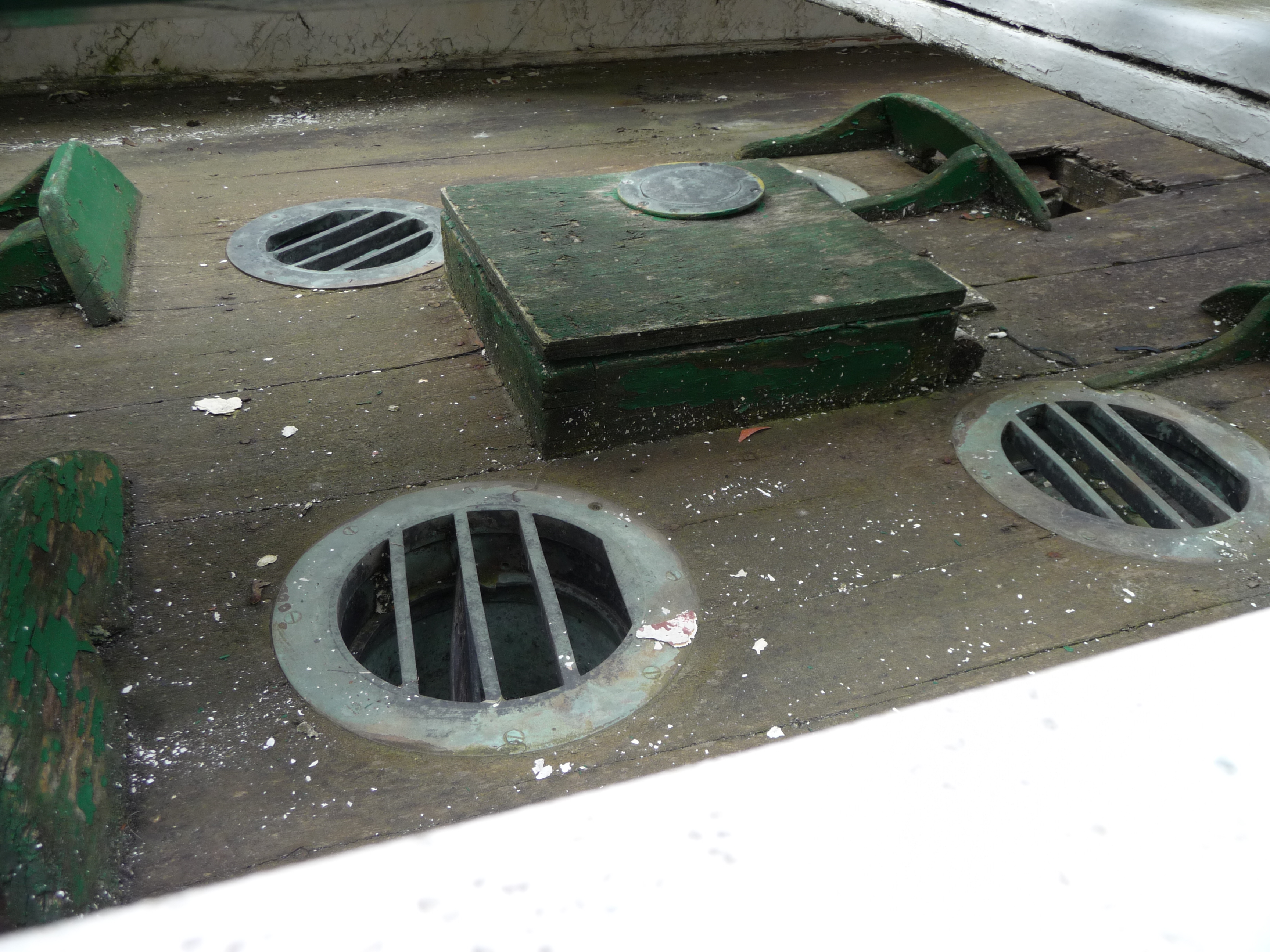 Détail puits à soupape, cale-pieds, capot de pont du Commandant Garreau, Musée de la pêche de Concarneau, avril 2014Immatriculation