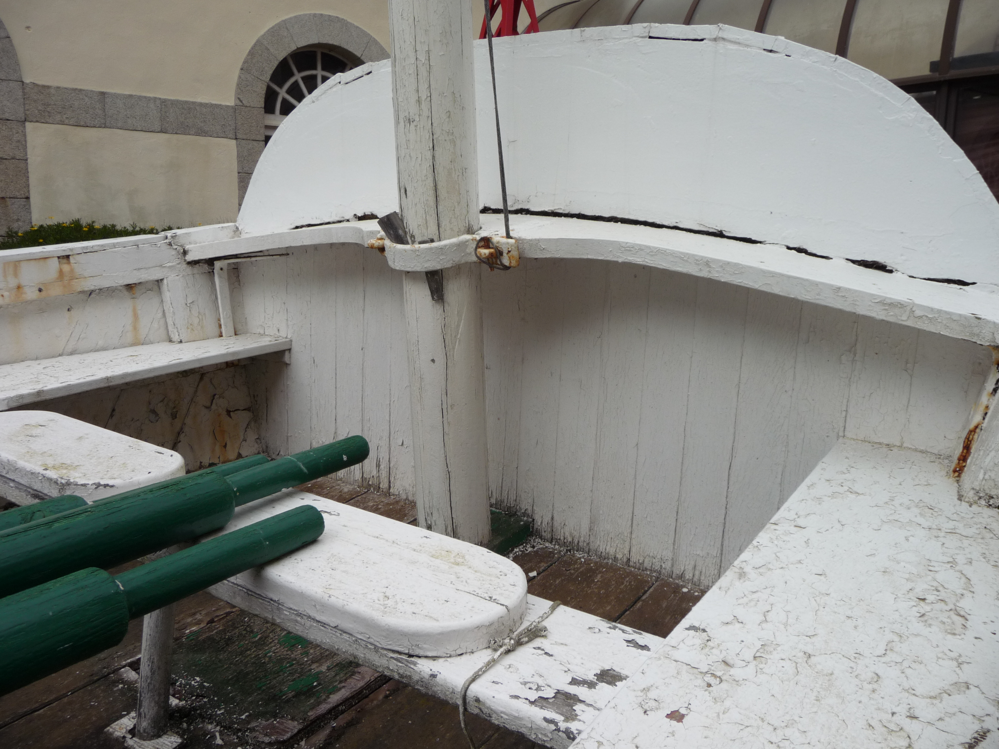 Vue coffre avant, banc et mât misaine Commandant Garreau, Musée de la pêche de Concarneau, avril 2014Immatriculation