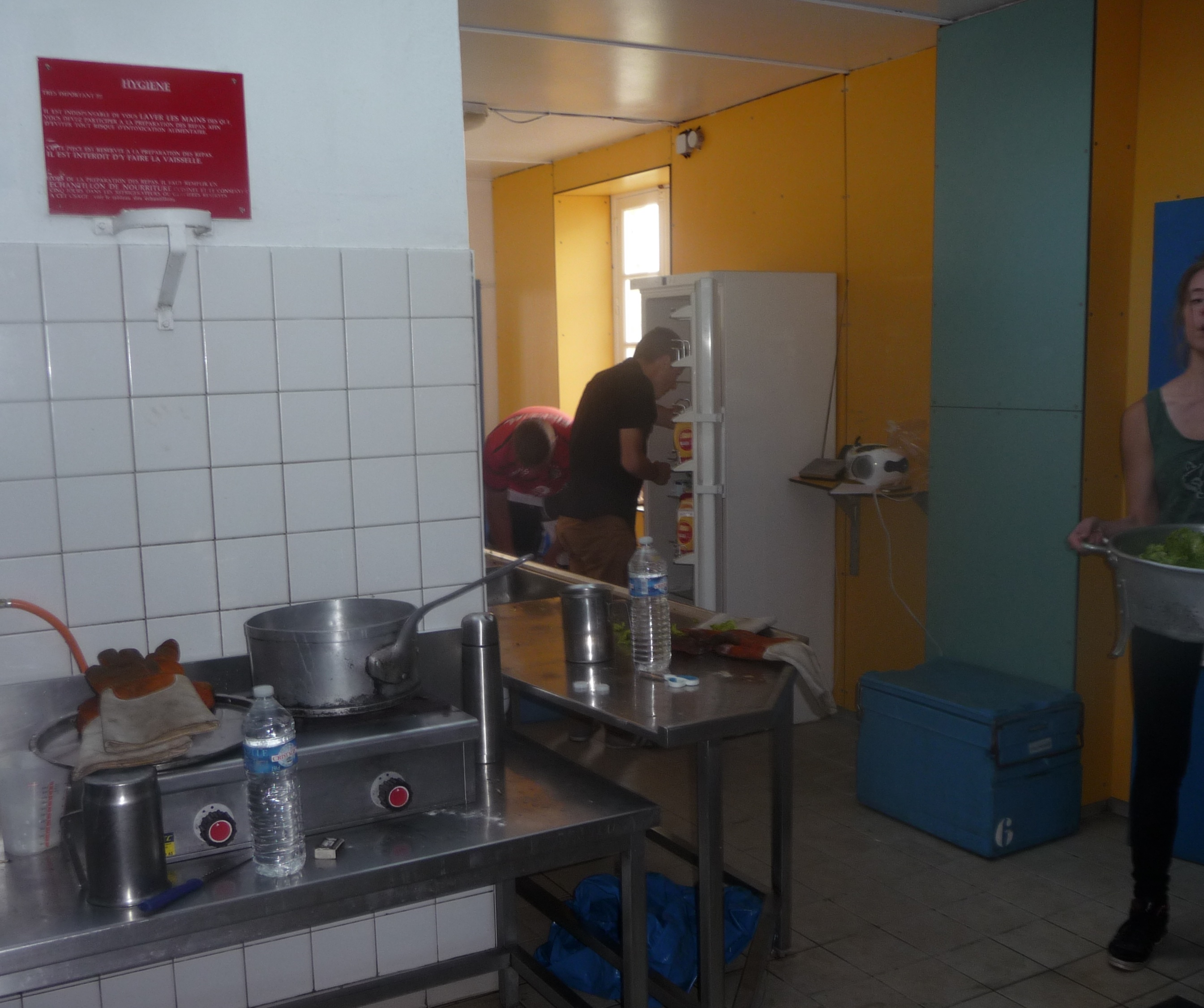 Cuisine, espace central réservé à la cuisson des repas, desservant deux espaces latéraux - sémaphore, Penfret, juin 2014Immatriculation