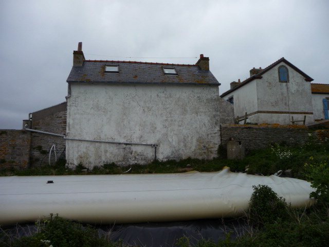 Façade arrière de l'ancienne maison des guetteurs-sémaphoriques, outre d'eau douce, pignon ouest du sémaphore, Penfret, juin 2014Immatriculation