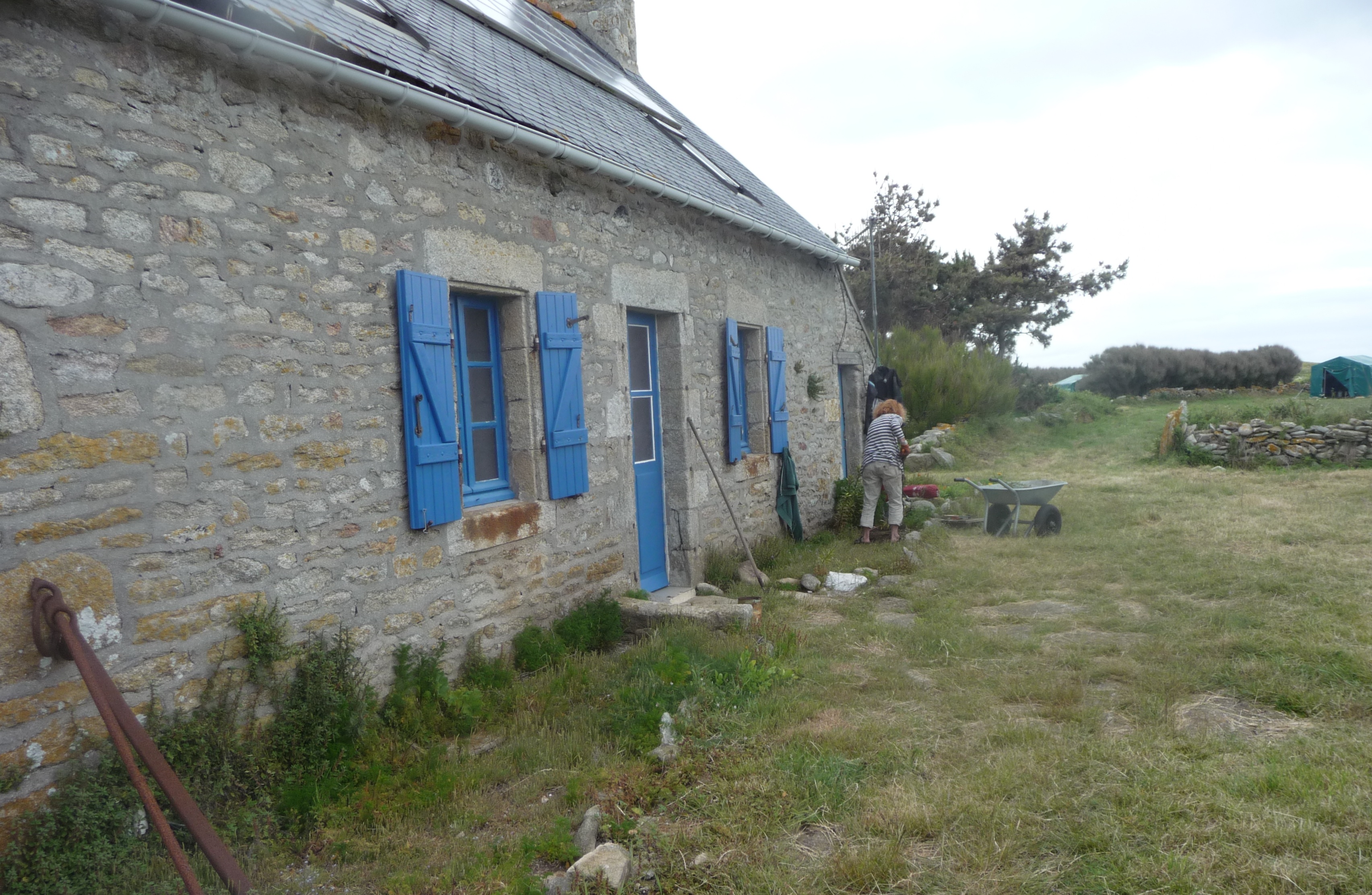 Drenec -Ferme - Façade sud - une bénévole fait des plantations - juin 2014Immatriculation