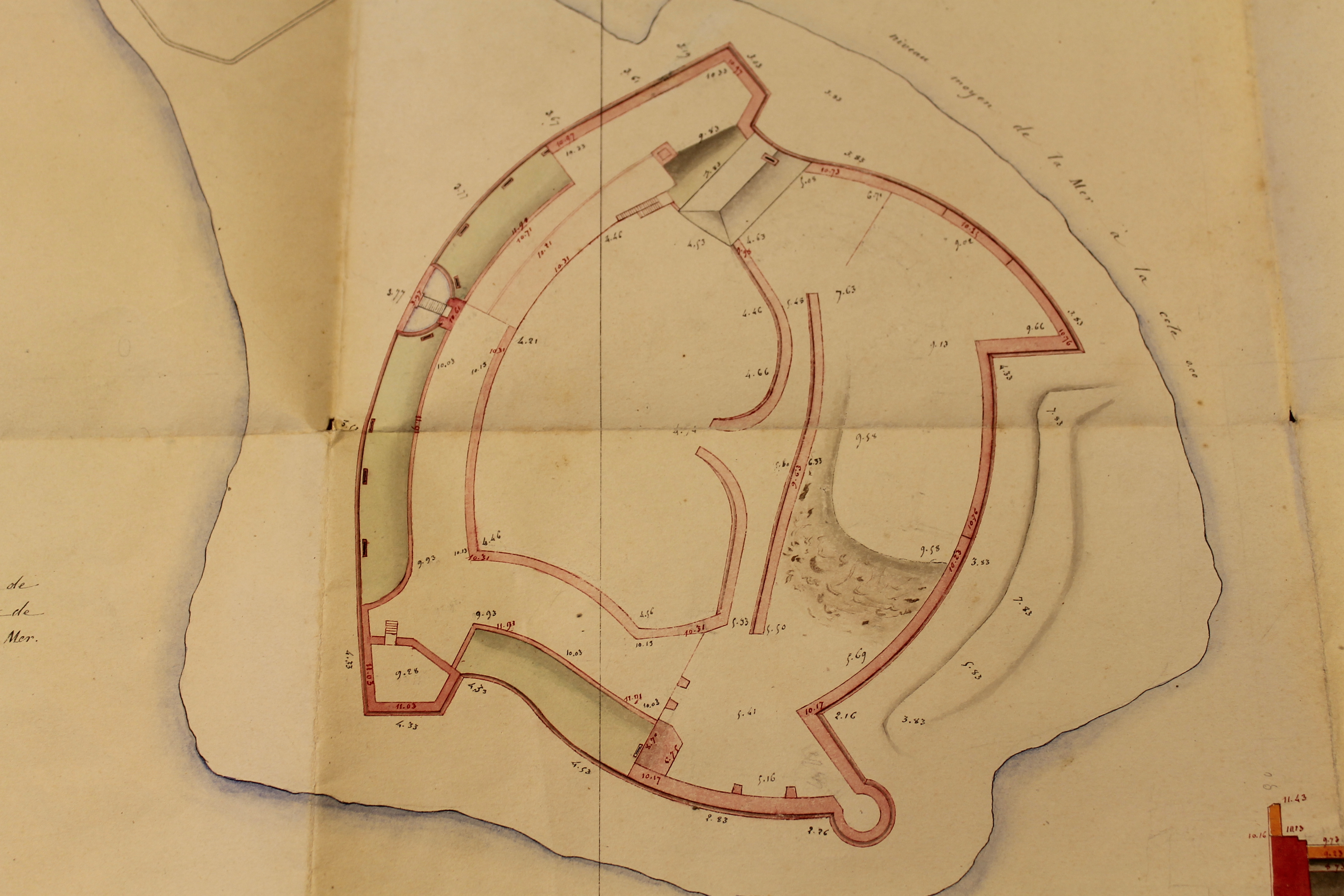 Terminer le fort Cigogne, fait et dessiné par la capitaine du génie en chef, Rousseau, à Quimper le 30 décembre 1857Immatriculation