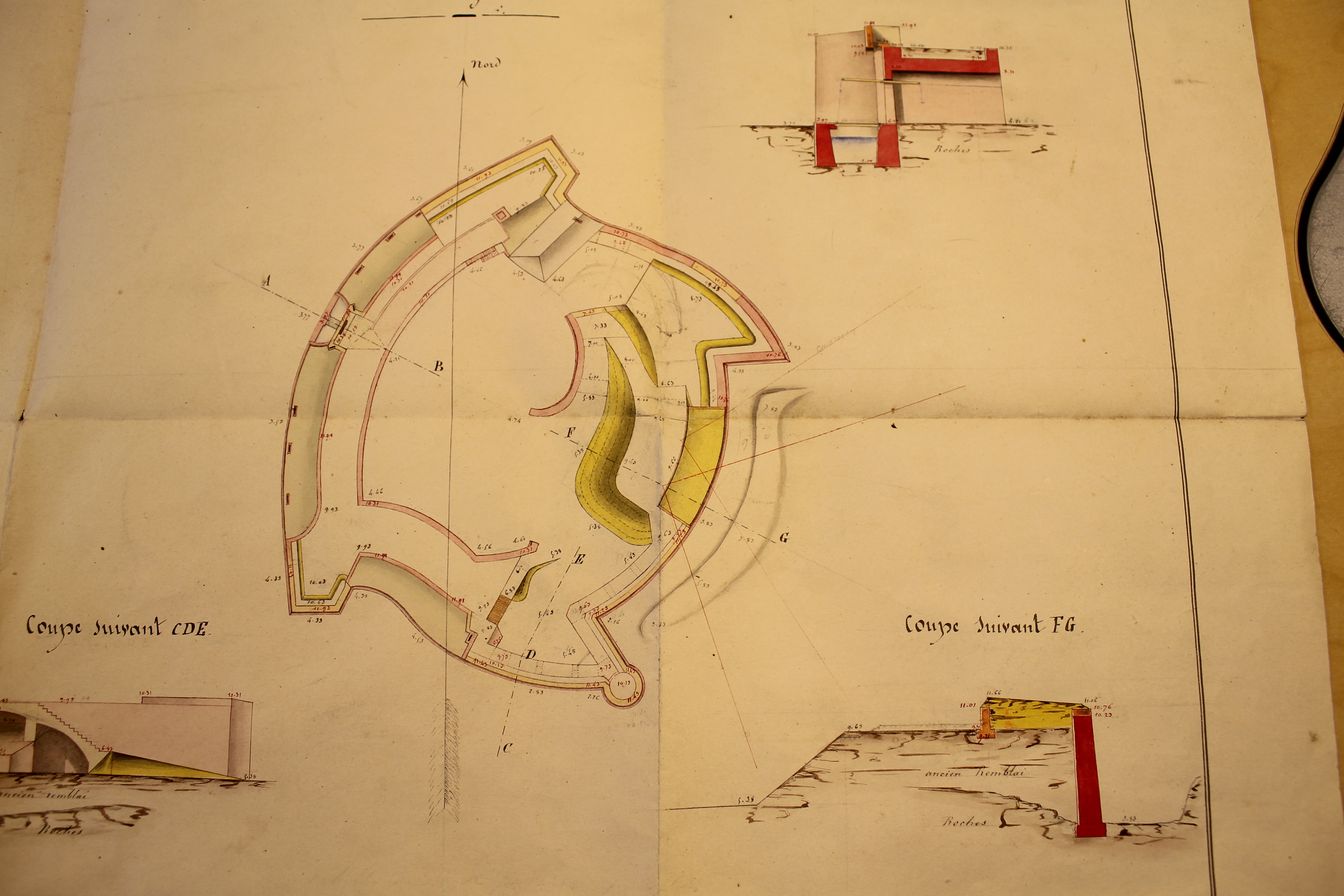 Terminer le fort Cigogne, fait et dessiné par la capitaine du génie en chef, Rousseau, à Quimper le 30 décembre 1857Immatriculation