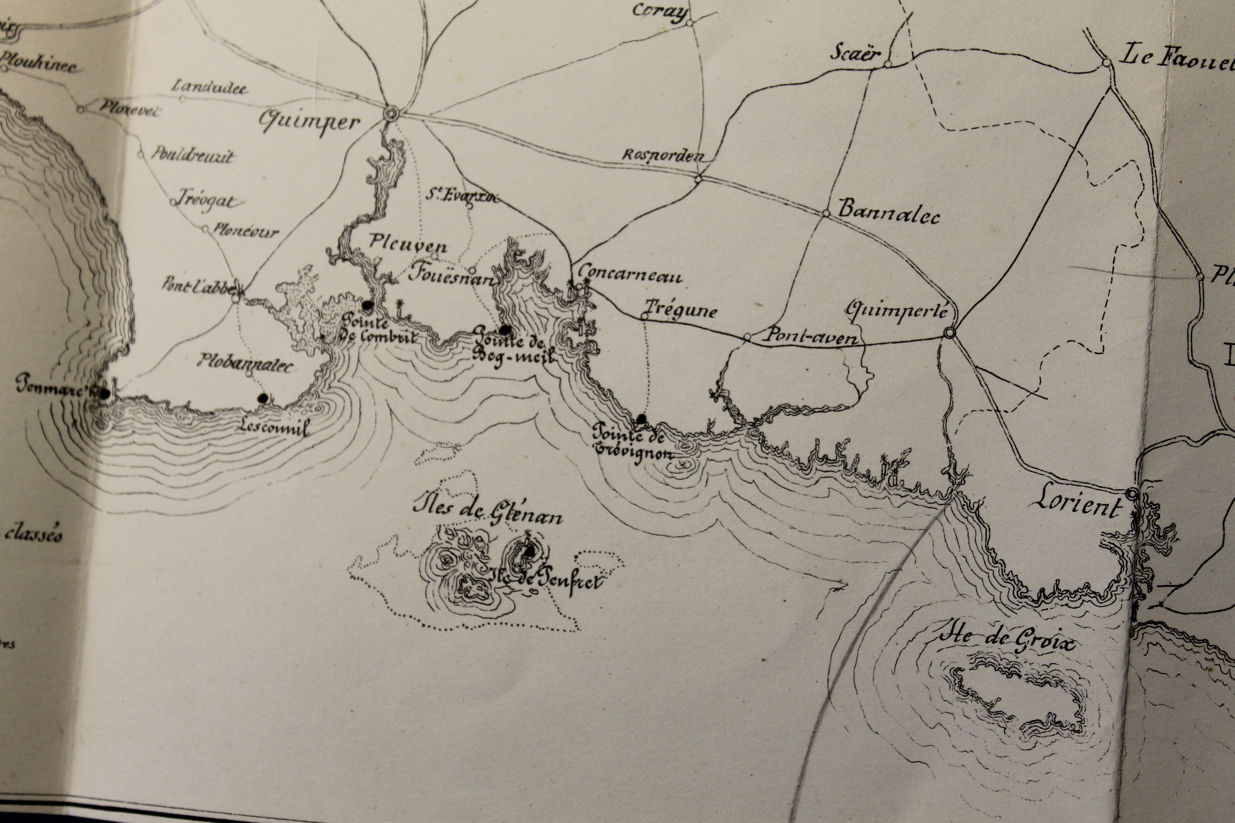 Carte du littoral du 2ème arrondissement maritime, portant indication des 44 postes électro-sémaphoriques qui doivent être construits dans cet arrondissement, Port de Brest, Travaux hydrauliques et bâtiments civils, année 1860
