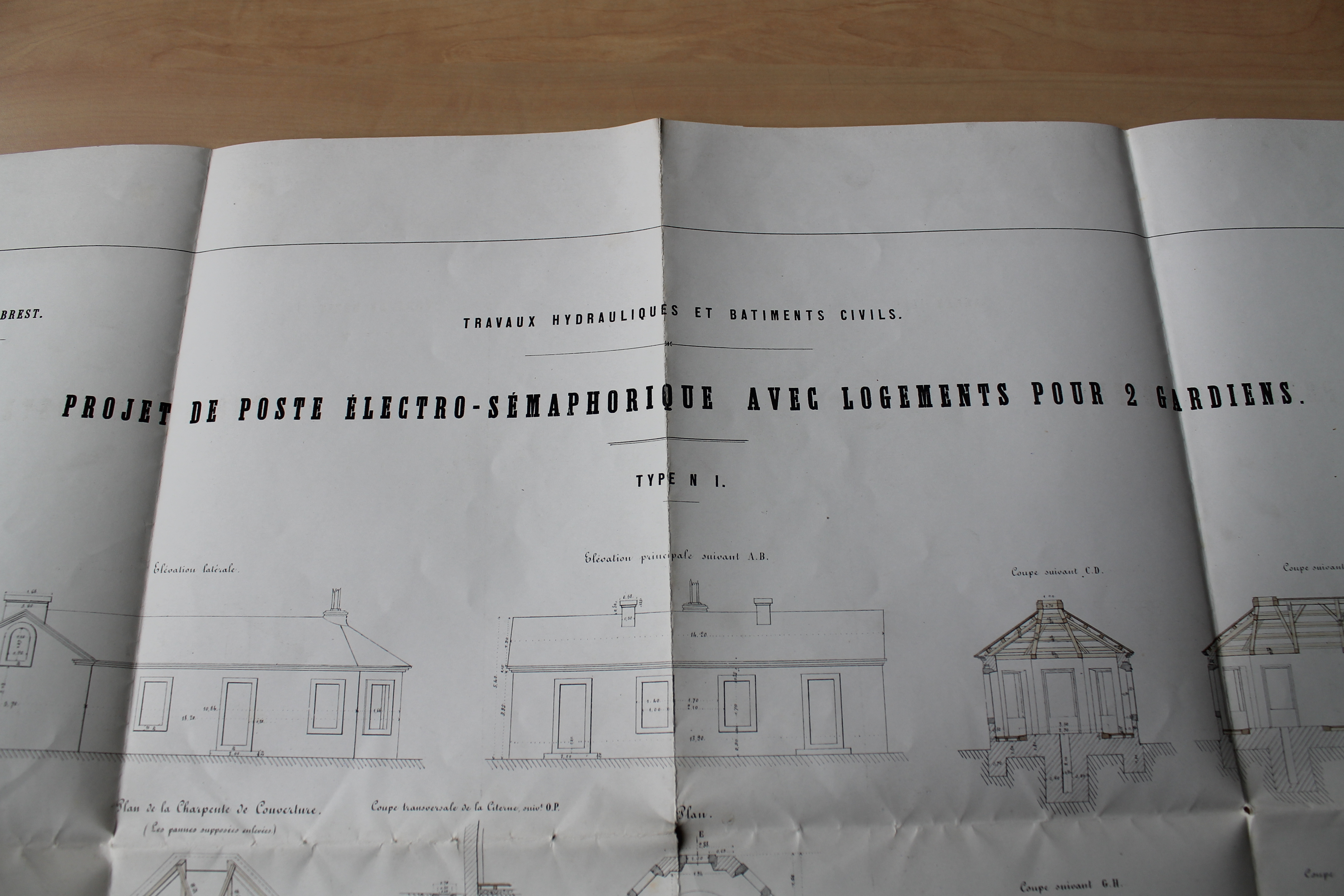 Projets de poste électro-sémaphoriques avec logement pour deux gardiens. Port de Brest, travaux hydrauliques et bâtiments civils. Signé par le directeur des travaux hydrauliques, Dehargne, Brest le 26 mai 1860Immatriculation