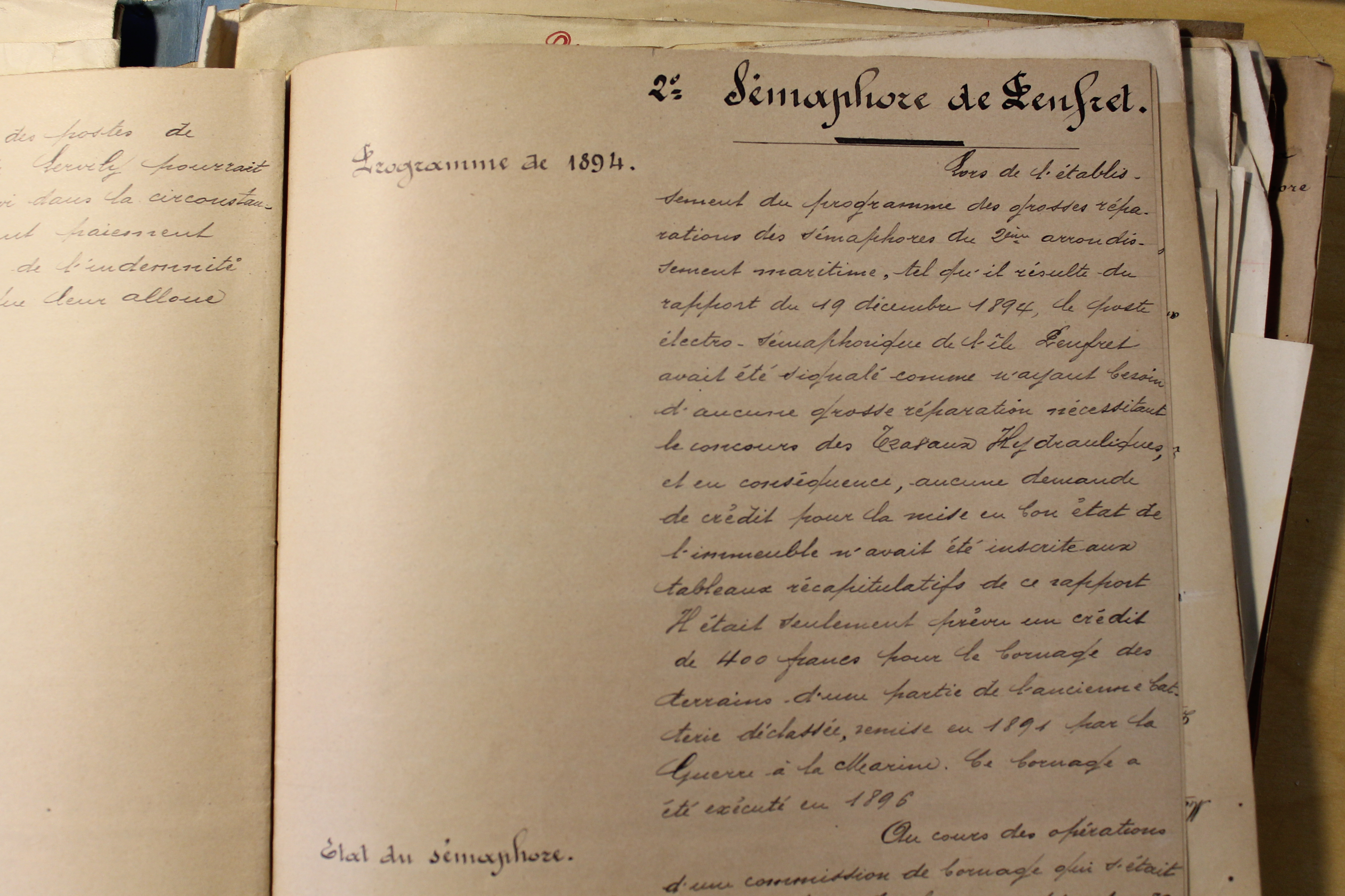 Réparation et réfection partielle des postes électro-sémaphoriques de Beg-Meil et de l'île Penfret. 1894