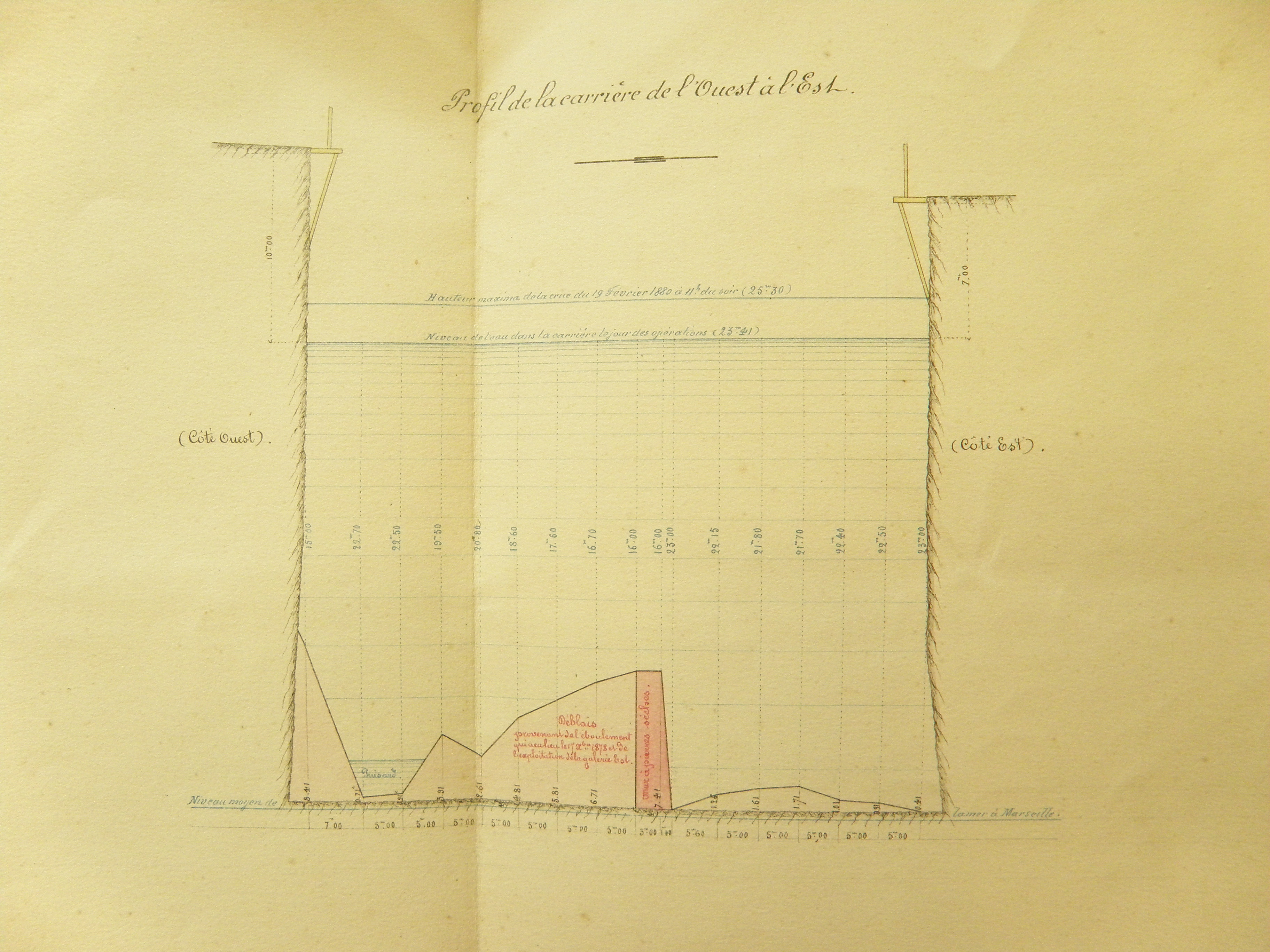 Profil de l'ardoisière de Rospéron, d'ouest en est en 1880Immatriculation