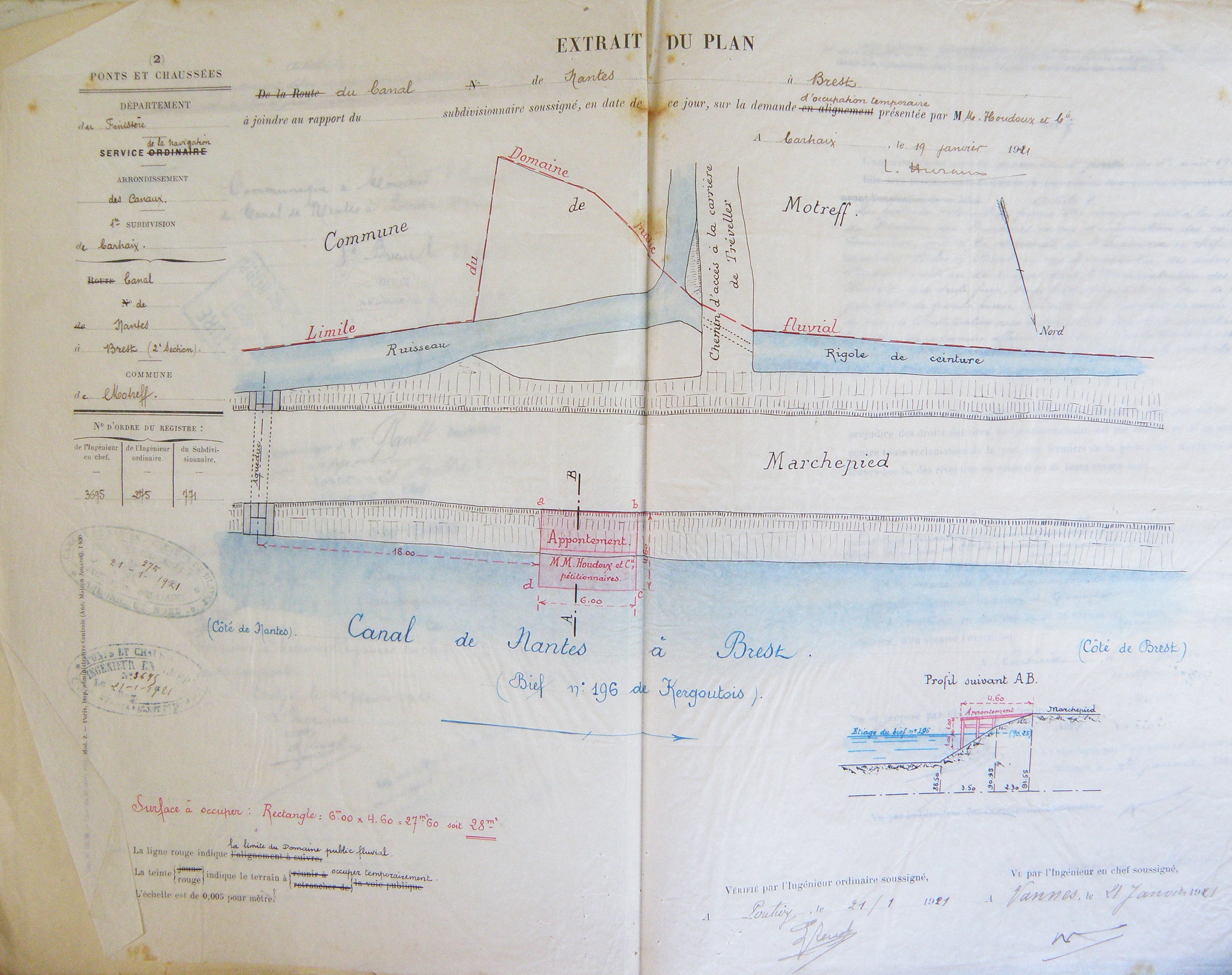 Plan pour la demande d'occupation temporaire faite par MM. Houdoux et Cie en 1921Immatriculation