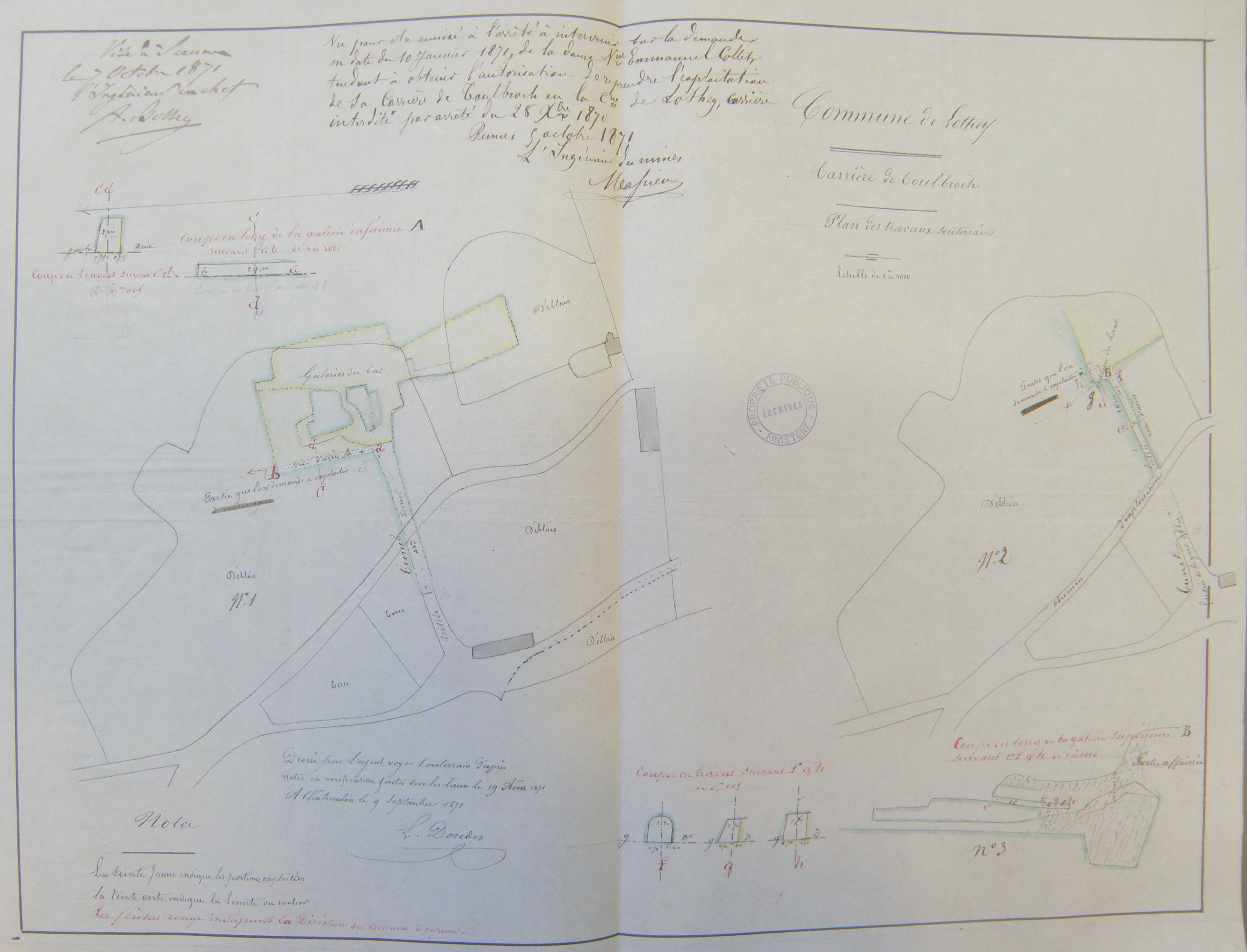 Plan de la carrière de Toul-ar-Broch datant de 1871Immatriculation