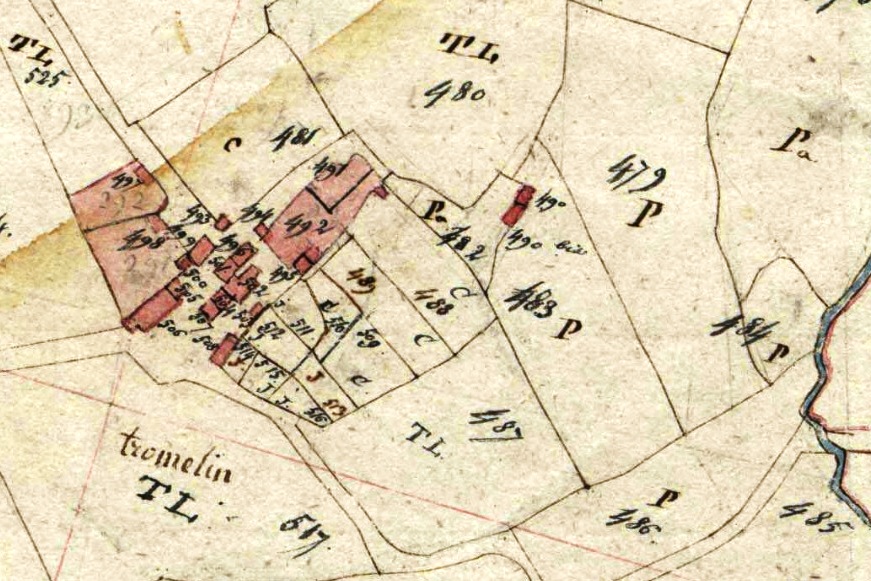 Extrait du plan du cadastre napoléonien de la commune de Tréflévénez (parcelles n° B490 et 490bis)Immatriculation
