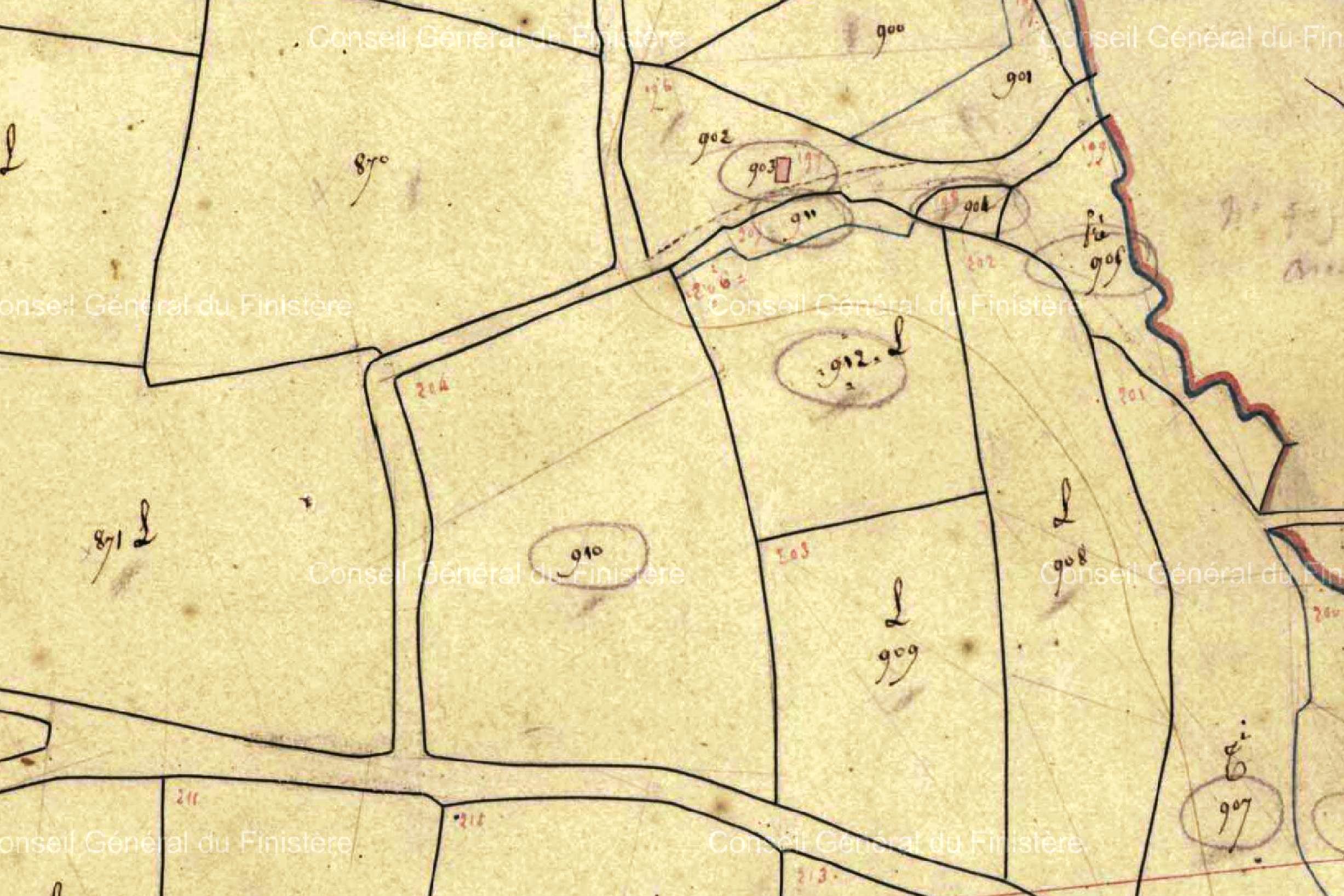 Extrait du plan du cadastre napoléonien de la commune de Guipavas (parcelle n°B903)Immatriculation