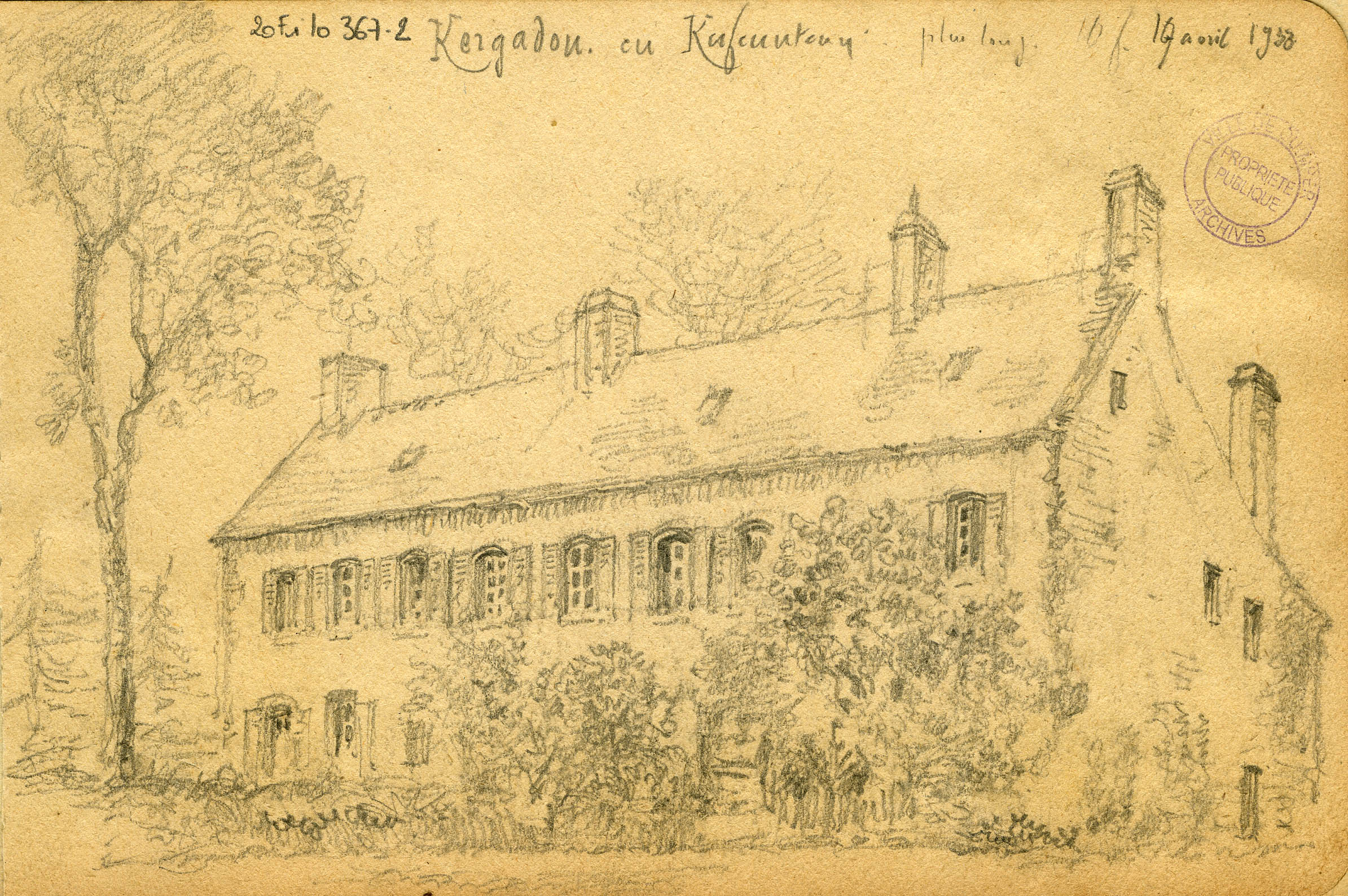 Dessin du manoir de Kergadou par Louis Le GuennecImmatriculation