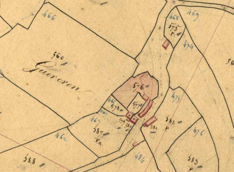 Extrait du plan du cadastre napoléonien de la commune de Saint-Urbain (parcelles n°C575 ou C576)Immatriculation