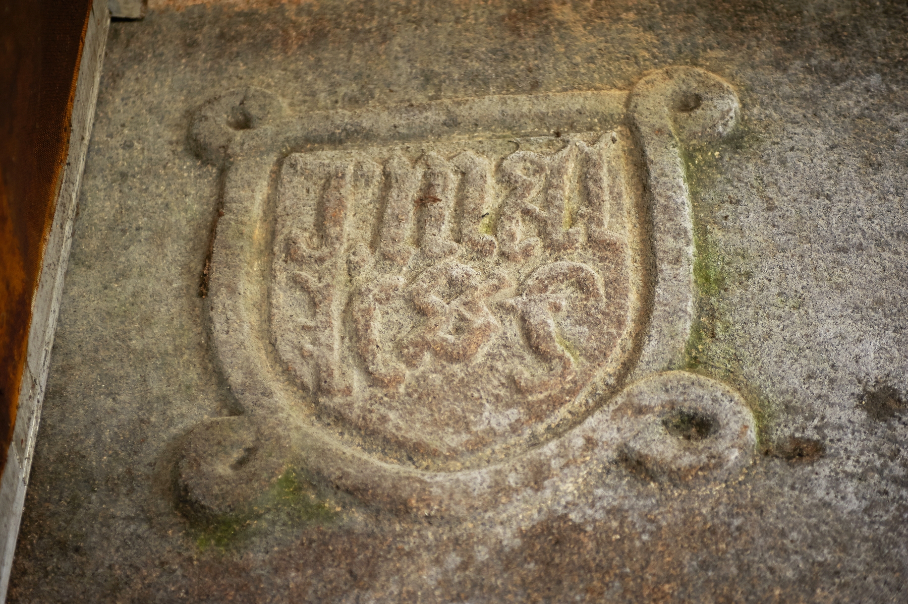 Détail de l'écu du linteau de la cheminée du rez-de-chausséeImmatriculation