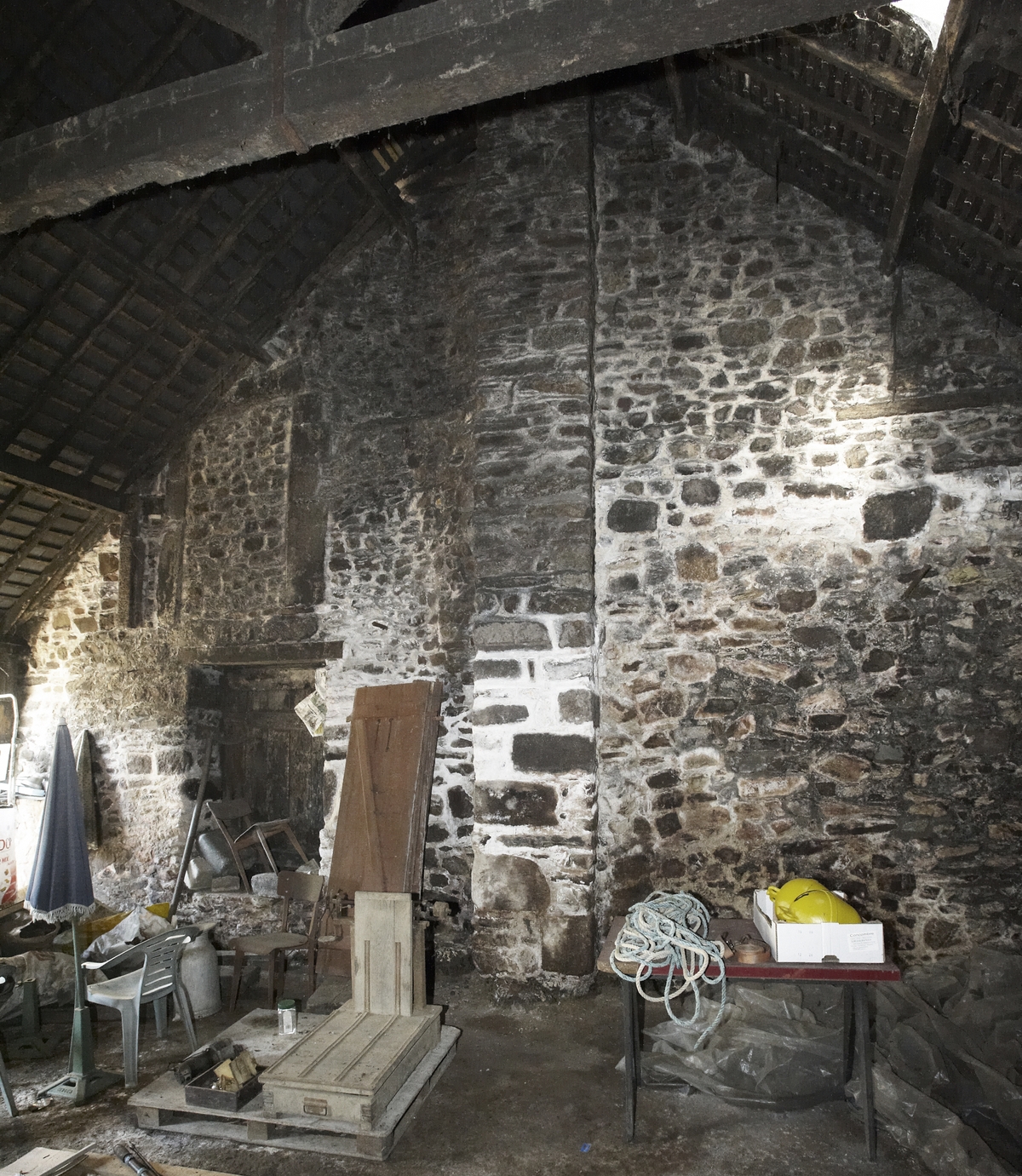Emplacement de l'ancienne tour d'escalier et ouvertures bouchéesImmatriculation