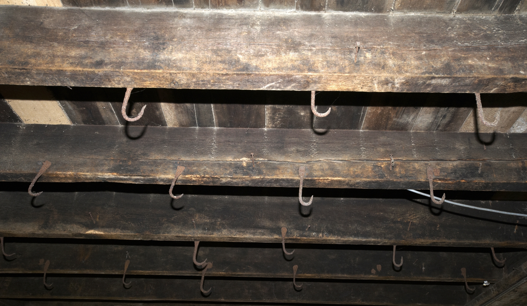 Détail de l'intérieur : crochets destinés à l'accrochage des peauxImmatriculation