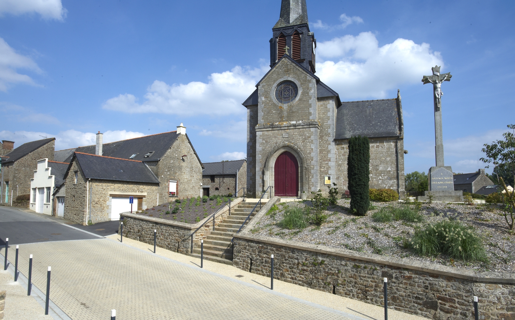 Place de l'église - église et départ de la rue du CoglaisImmatriculation