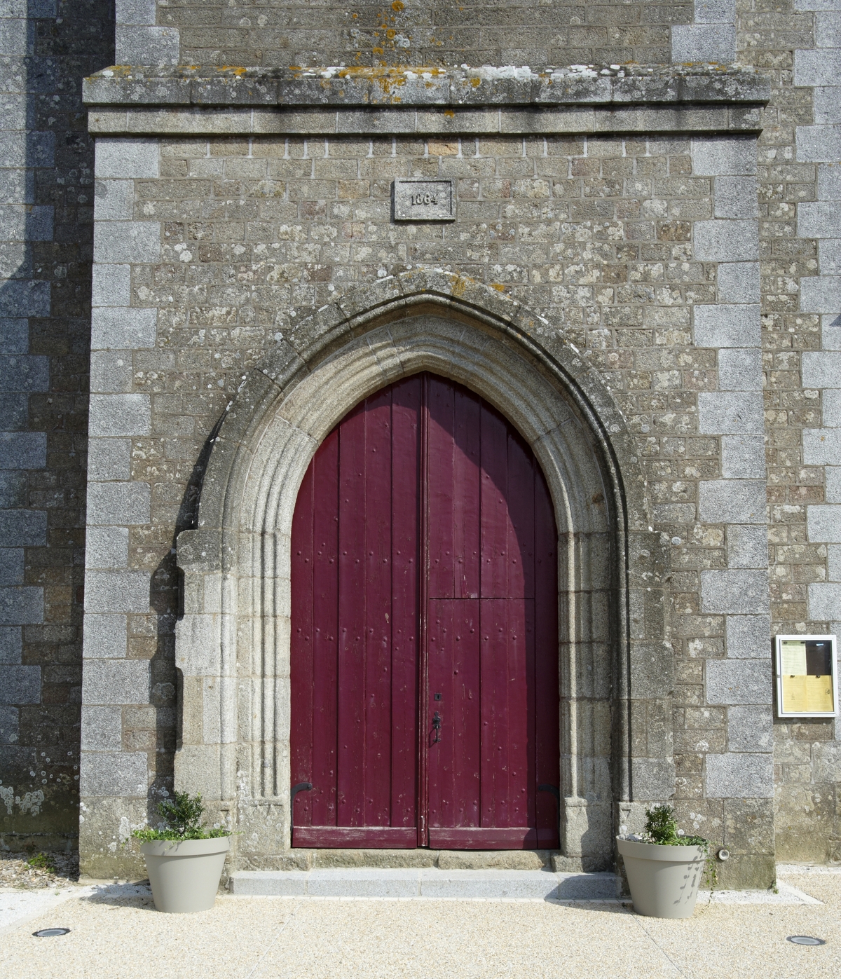 Elévation Ouest : détail du portail et date de 1864Immatriculation