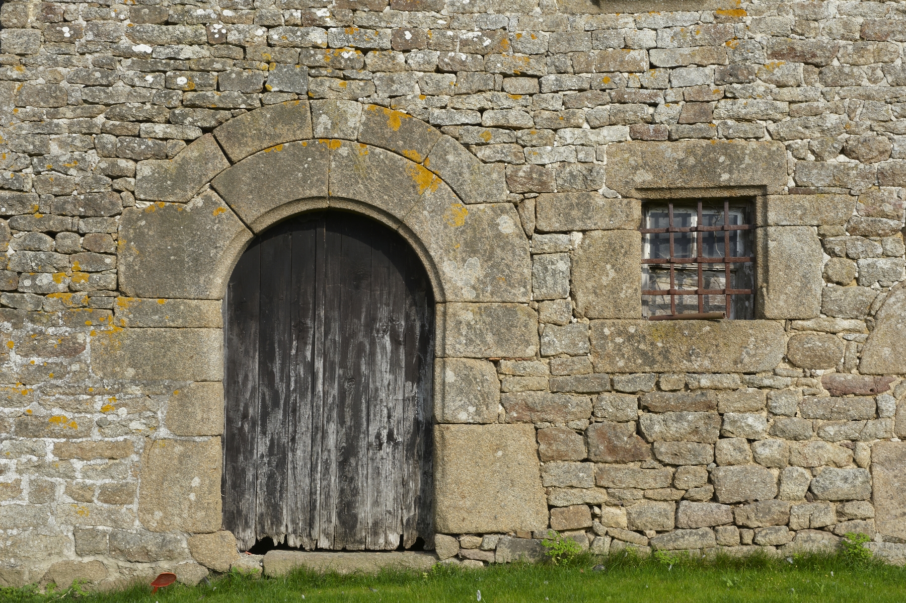 Façade ouest, détail de la porte en plein cintre du centreImmatriculation