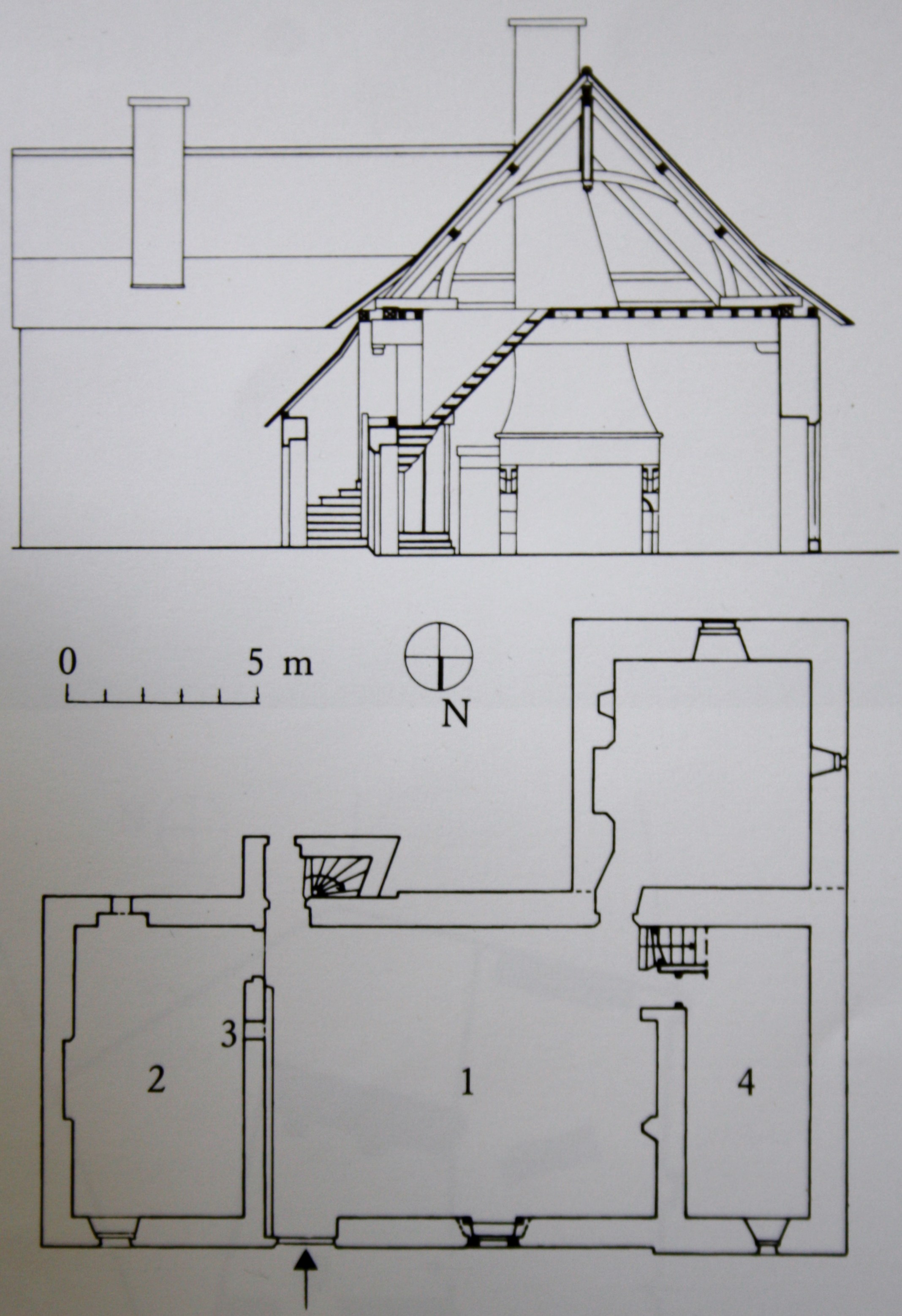 Coupe transversale de l'ancienne salle basse sous charpente _ plan du rez-de-chausséeImmatriculation