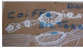 Catioles: l'une en tulle carré et l'autre avec le fond en tulle et les ailes en filet brodé. Collection M-T GUYADER de DINAN.Immatriculation
