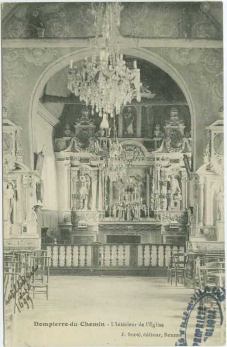 Dompierre-du-Chemin - Intérieur de l'église (carte postale)Immatriculation