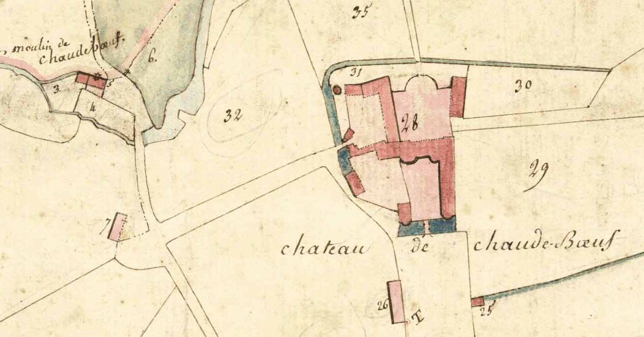 Le moulin de Chaudeboeuf sur le cadastre napoléonien du premier quart du 19e siècle.Immatriculation