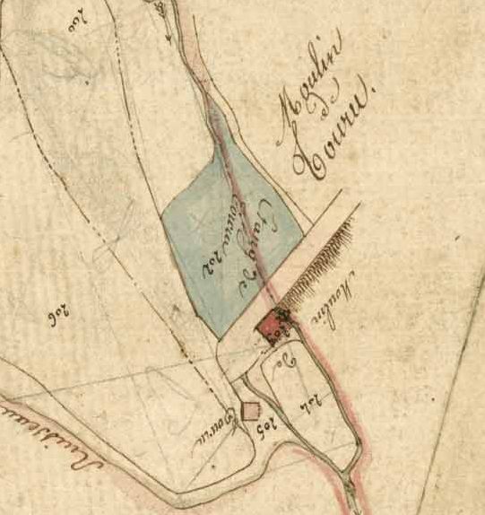 Le moulin de Touru sur le cadastre napoléonien du premier quart du 19e siècle.Immatriculation