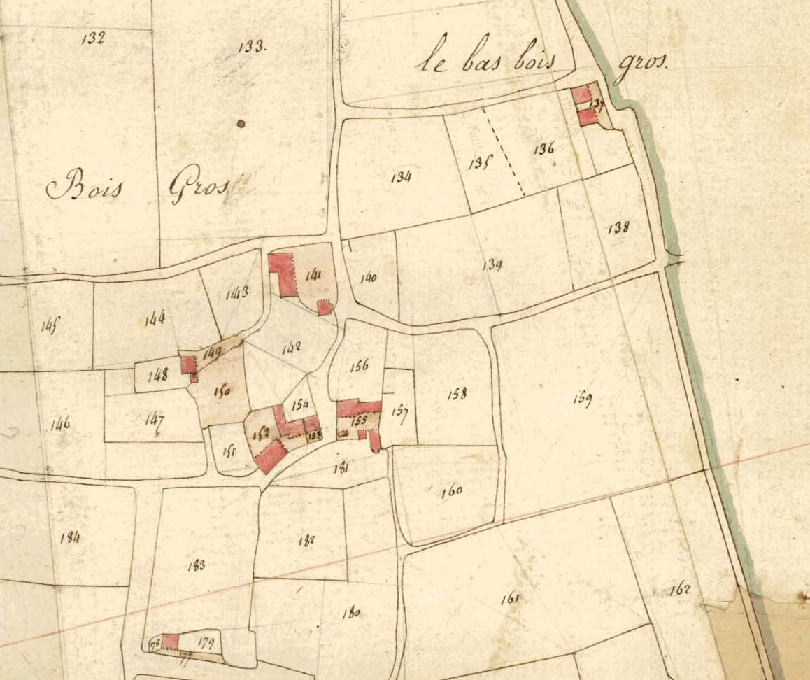 Le Bois Gros sur le cadastre napoléonien de 1820.Immatriculation