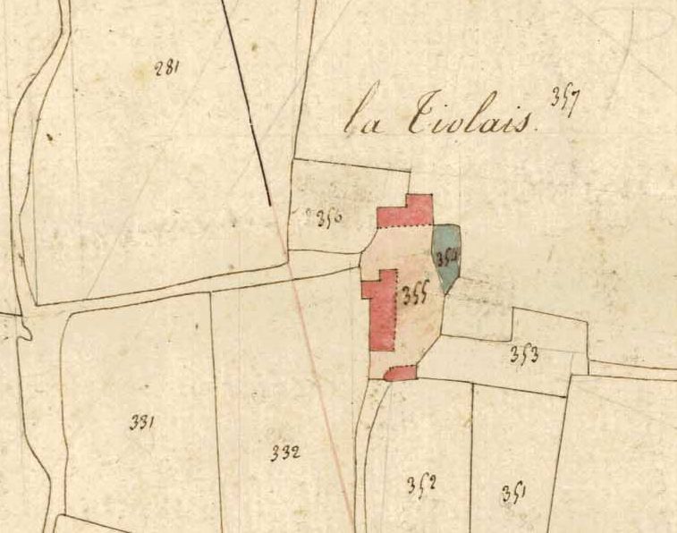 Le Manoir de la Tiolais sur le cadastre napoléonien de 1820.Immatriculation