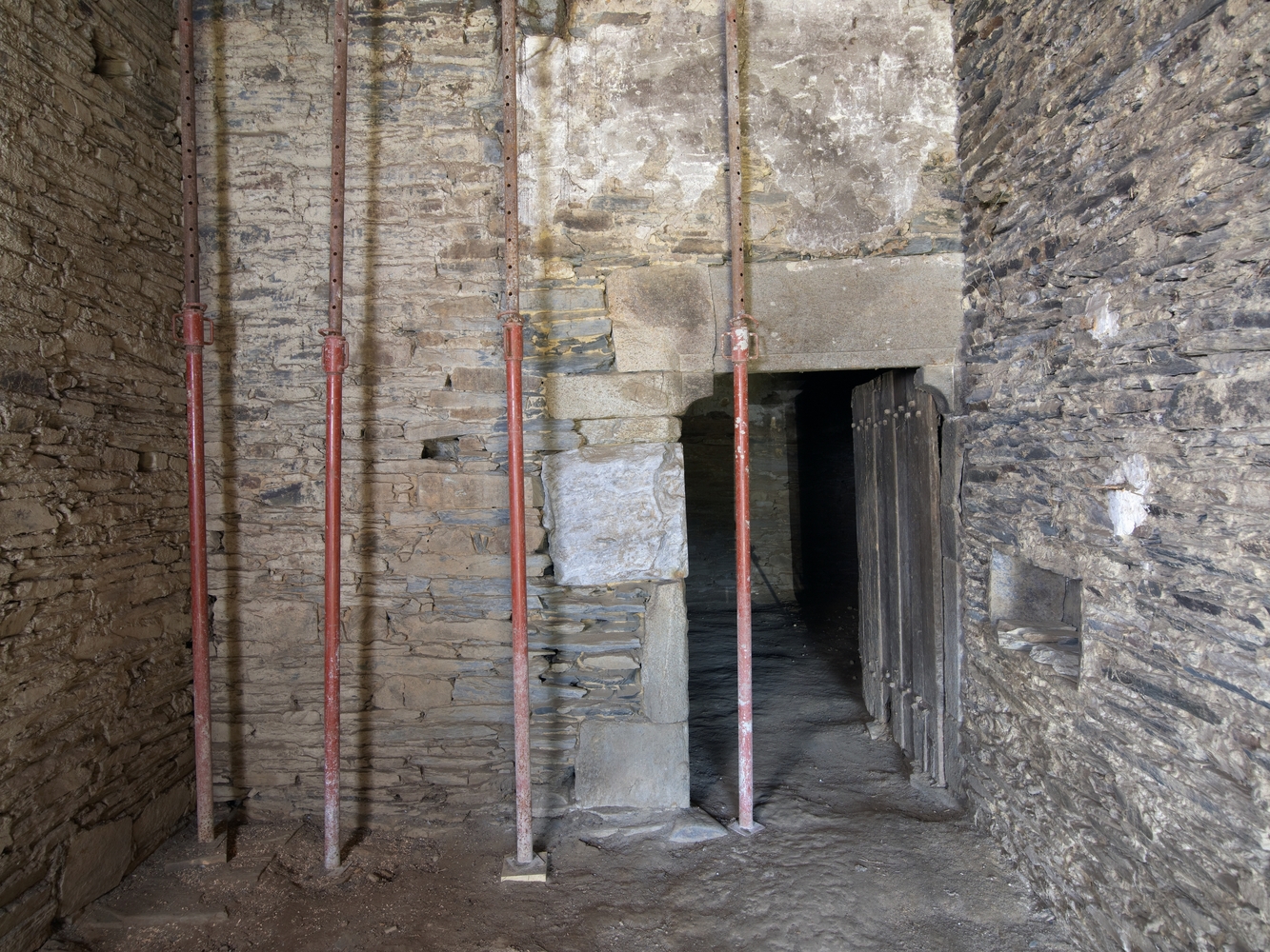 Manoir, rez-de-chaussée, entrée actuelle : porte d'accès au cellier sur le mur ouest (état en 2014)Immatriculation